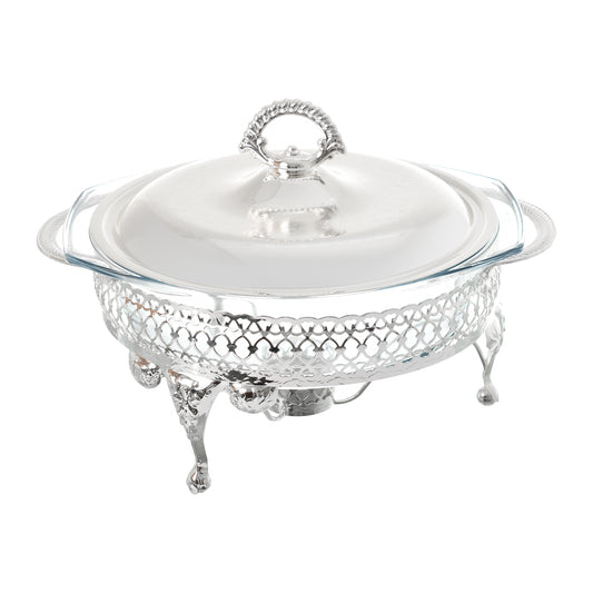 Queen Anne - 2 Rectangular Food Warmers With 2 Candles - Silver Plated & Tempered Glass - 41x28x19cm