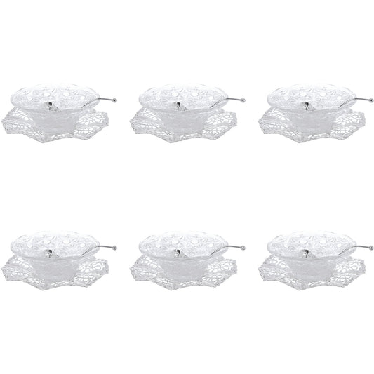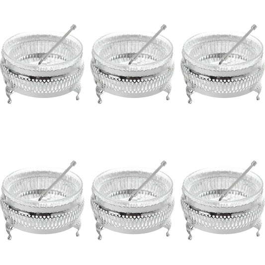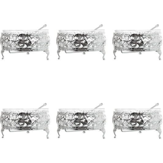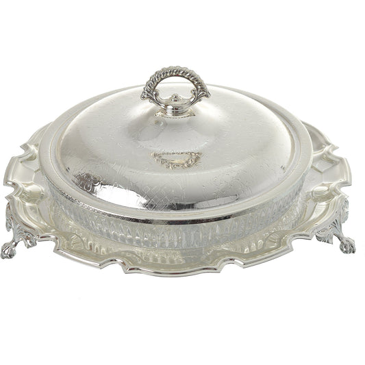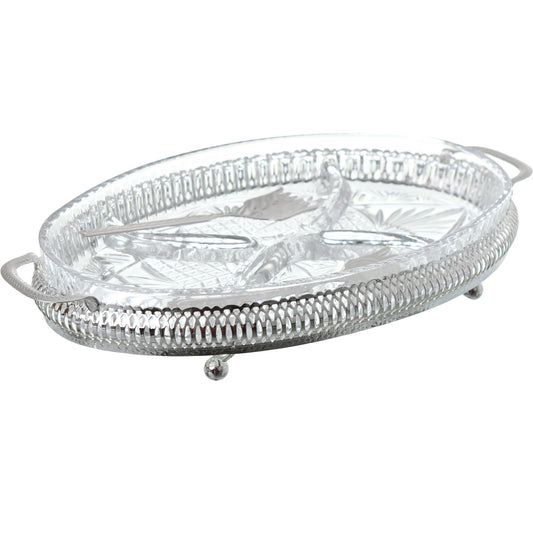 Queen Anne - Oval Hors d'oeuvre 4 Parts with 2 Serving Forks - Silver Plated Metal & Glass - 31x20cm