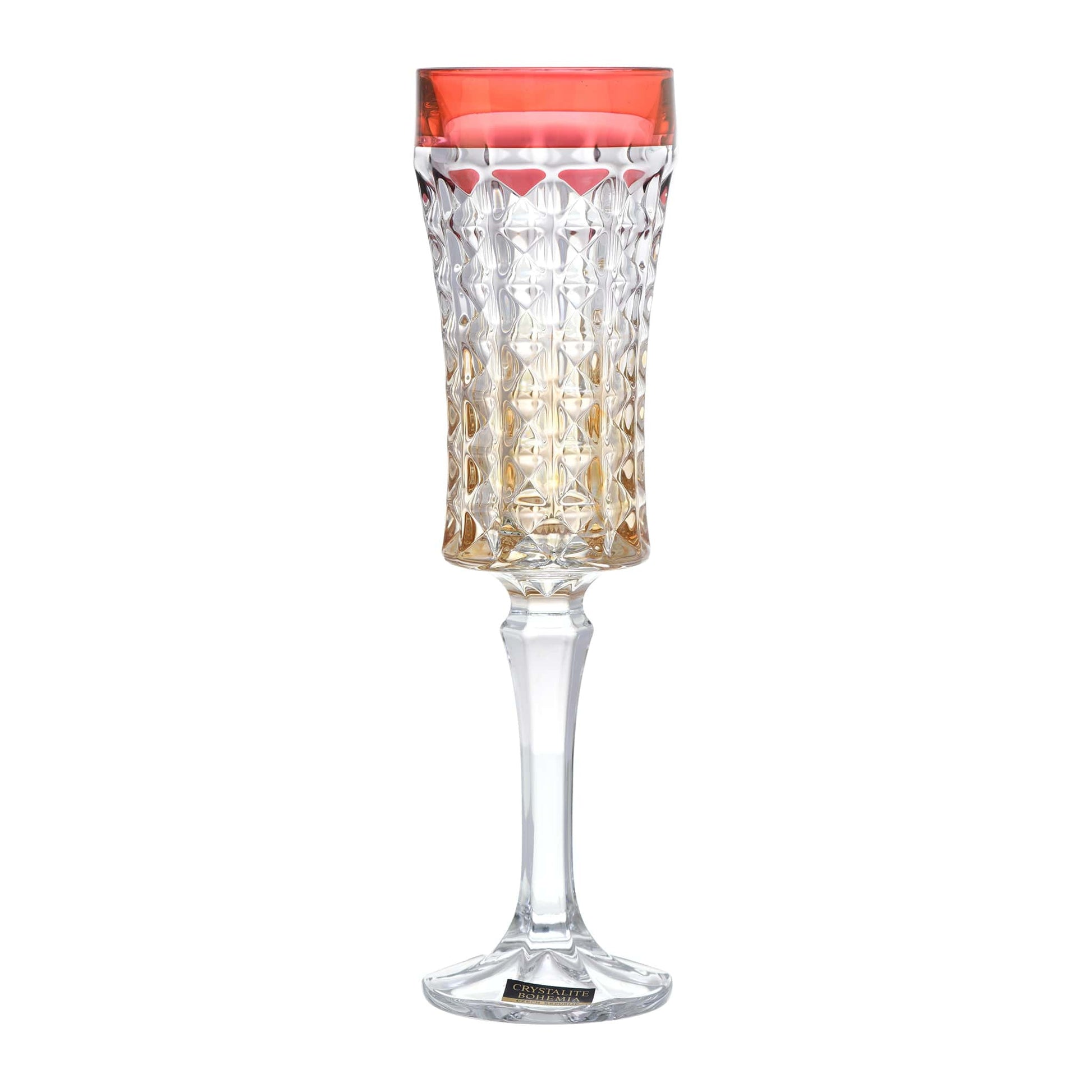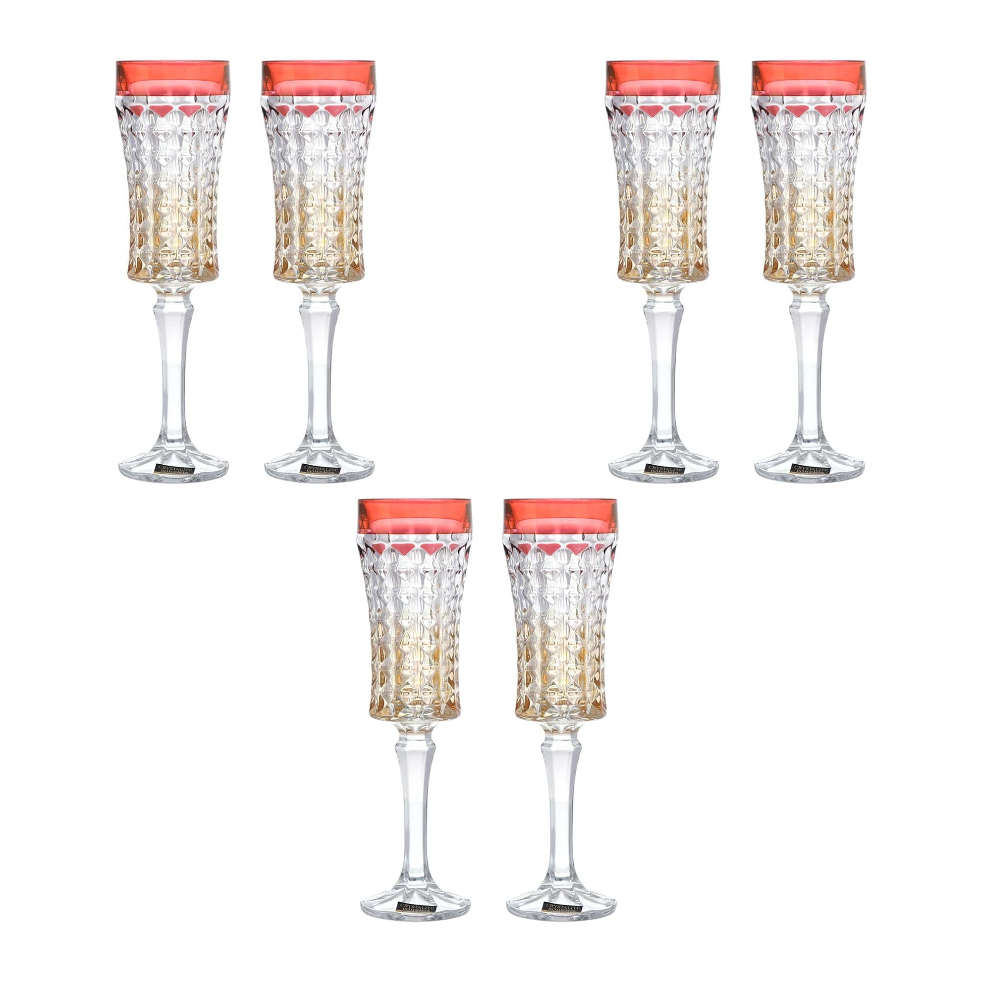 Bohemia Crystal - Flute Diamond Glass Set 6 Pieces - 120ml - Grey, Red & Yellow - Crystal