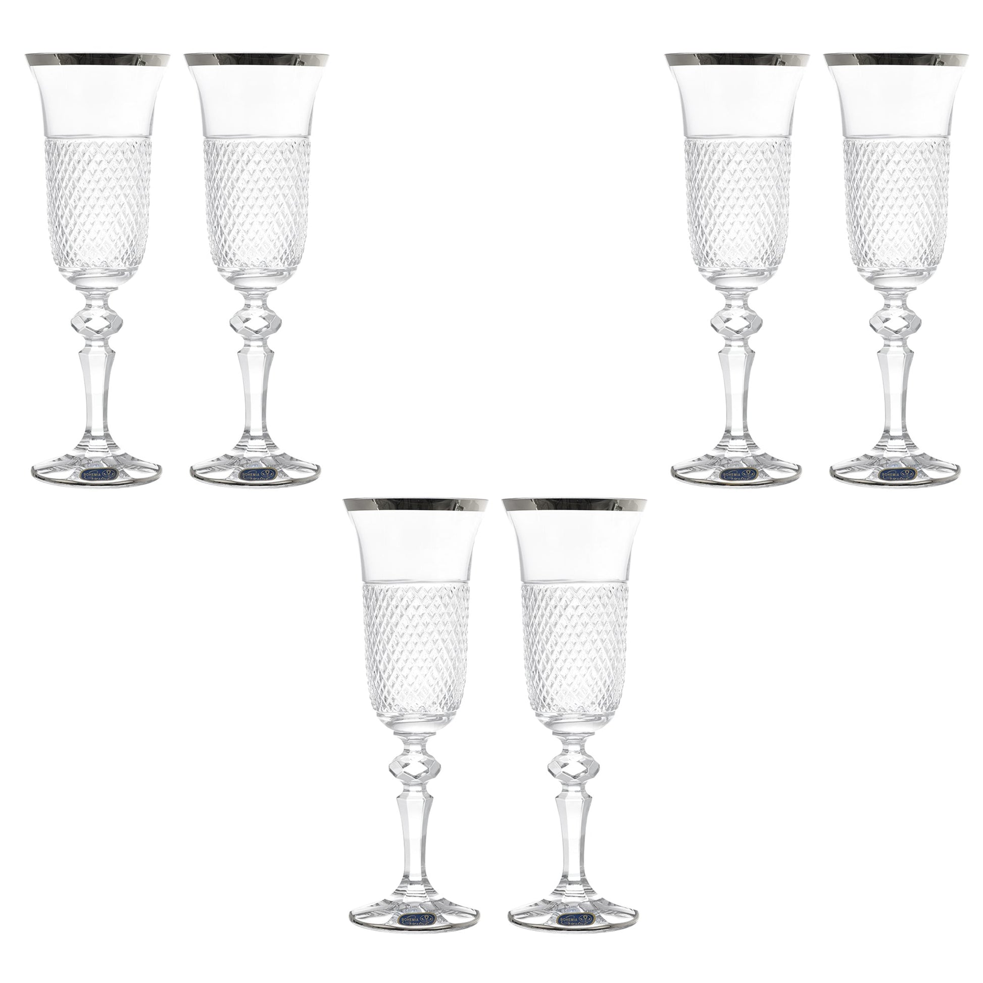Bohemia Crystal - Flute Glass Set 6 Pieces - Silver- 150ml