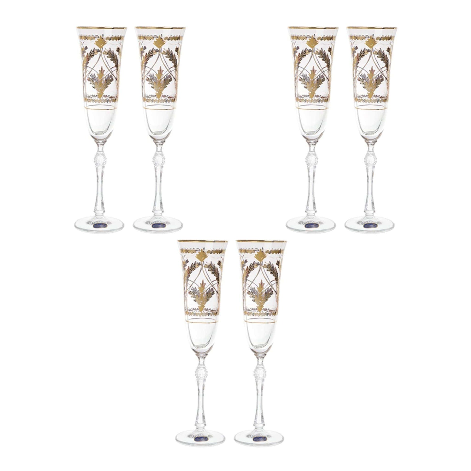 Bohemia Crystal - Flute Glass Set 6 Pieces - Gold - 150ml