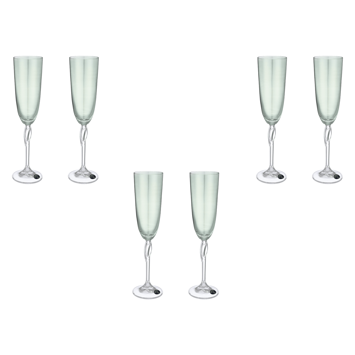 Bohemia Crystal - Flute Glass Set 6 Pieces - Green - 220ml - Crystal