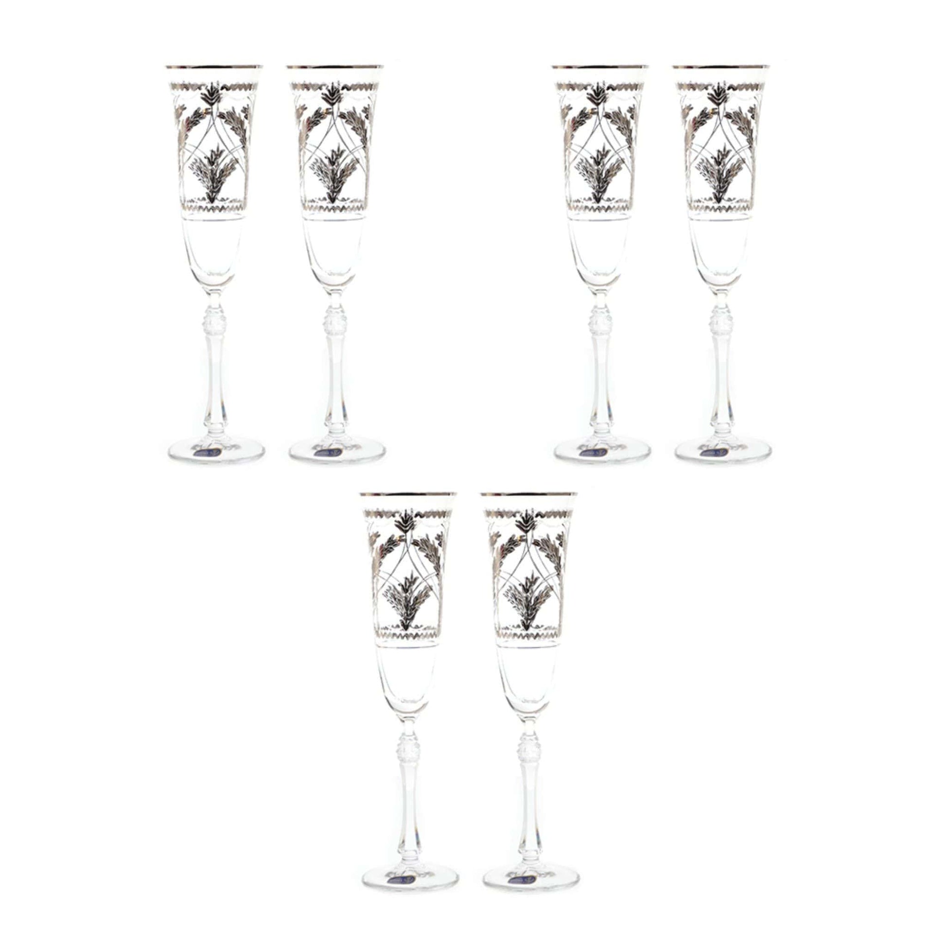 Bohemia Crystal - Flute Glass Set 6 Pieces - Silver - 150ml