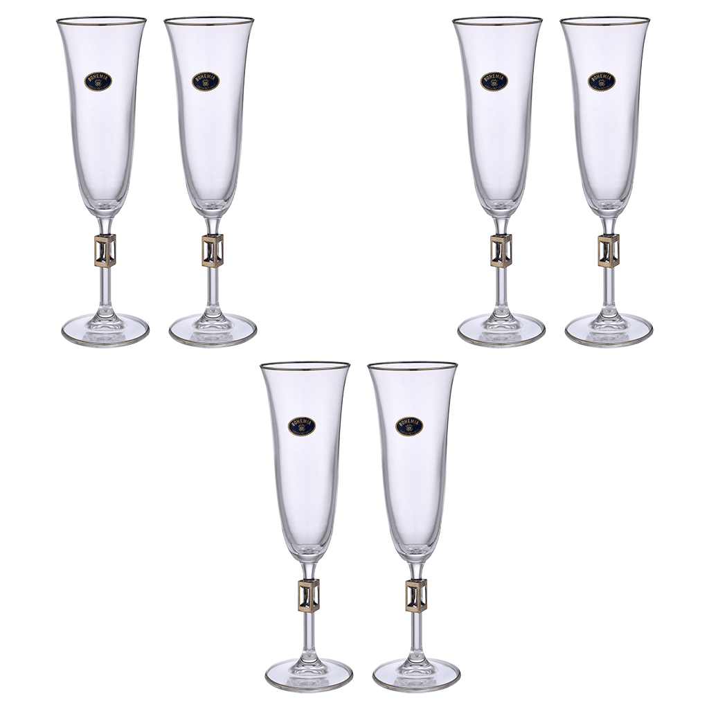 Bohemia Crystal - Flute Glass Set 6 Pieces - Silver - 150ml