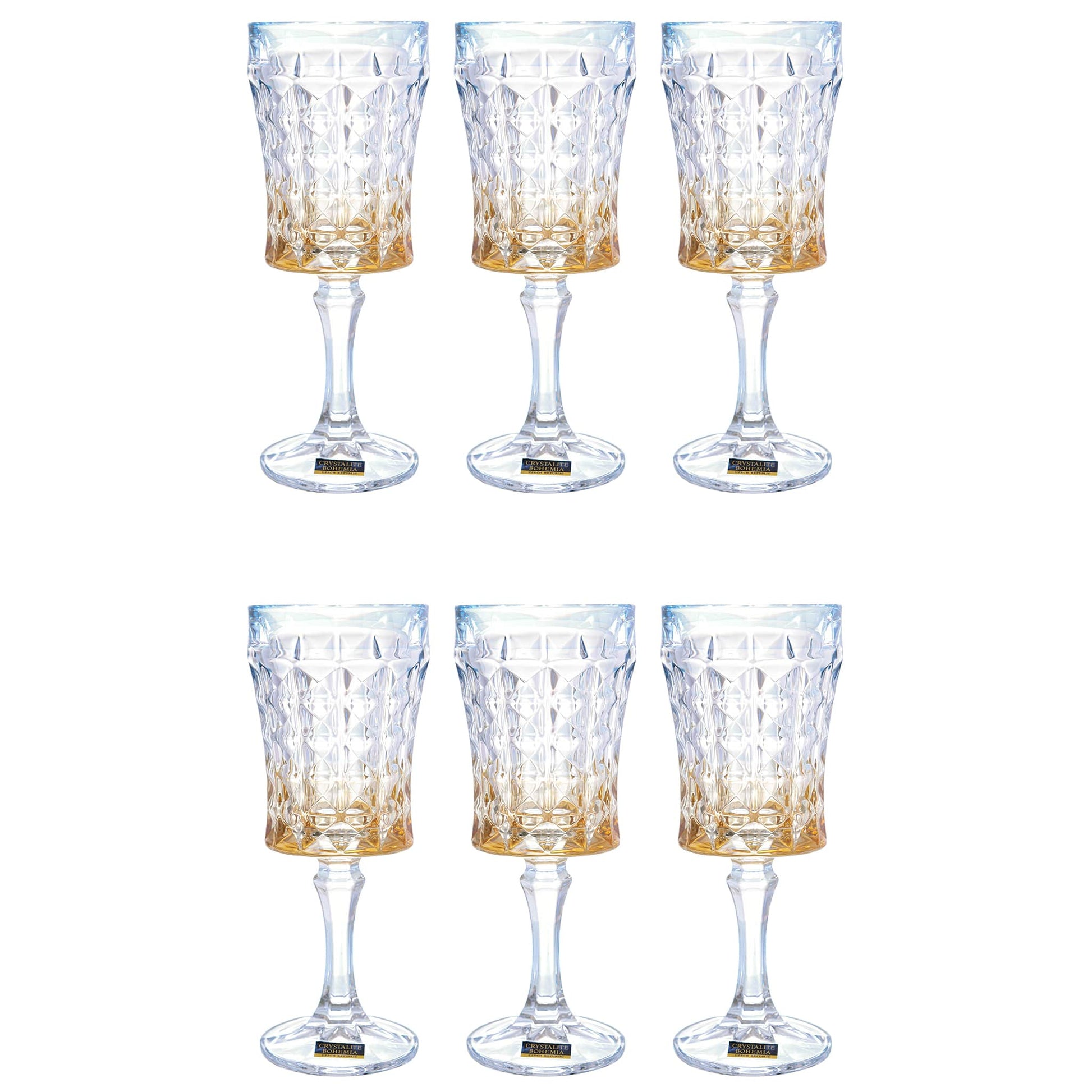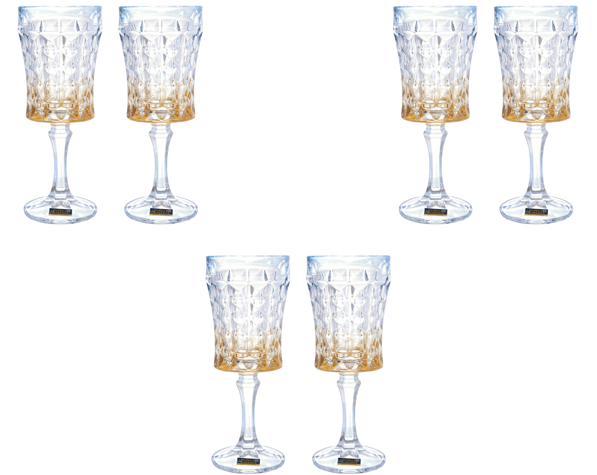 Bohemia Crystal - Goblet Diamond Glass Set 6 Pieces - Blue & Gold - 200ml - Crystal
