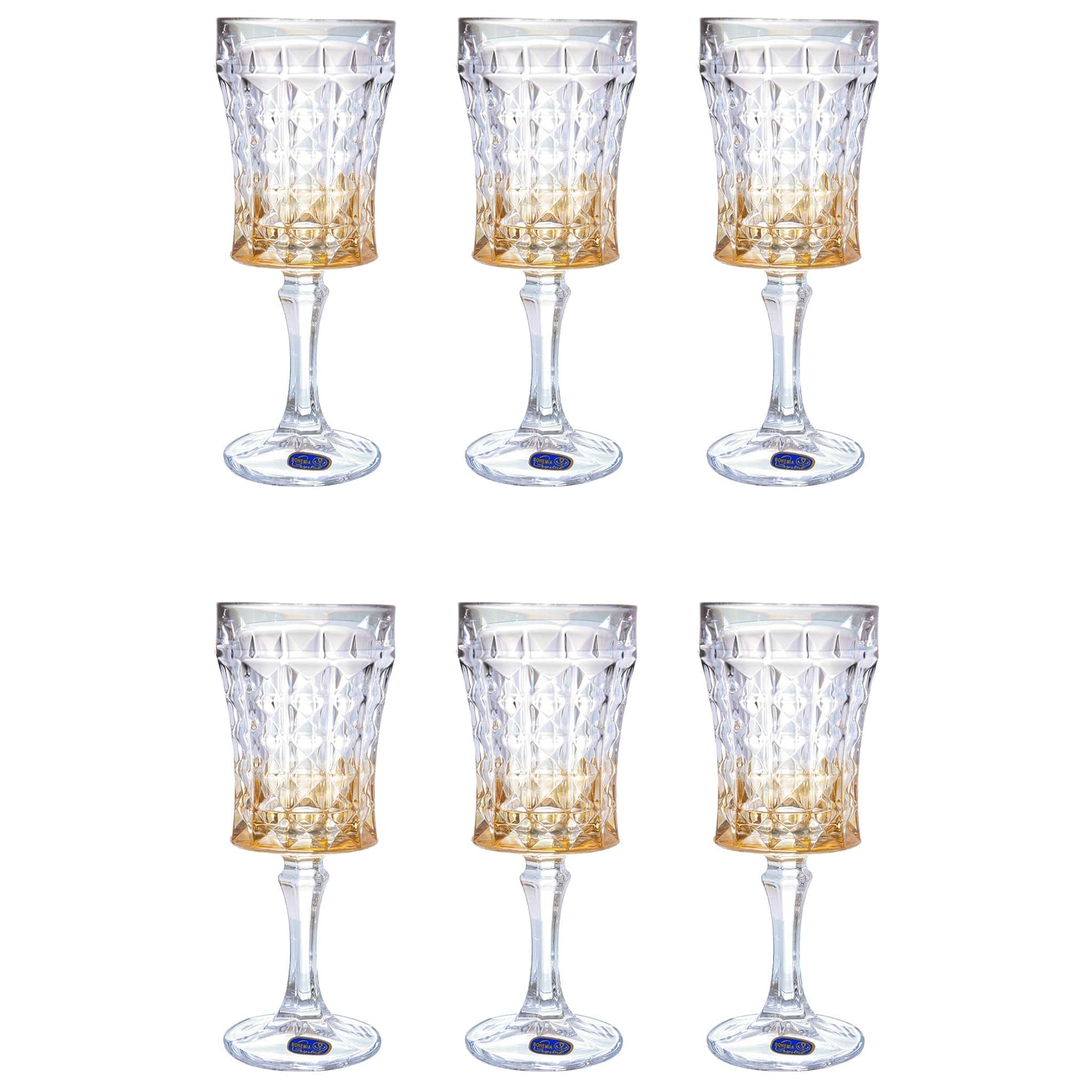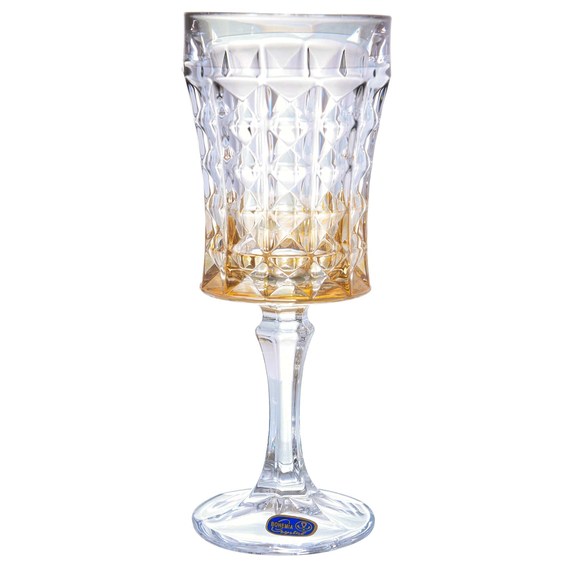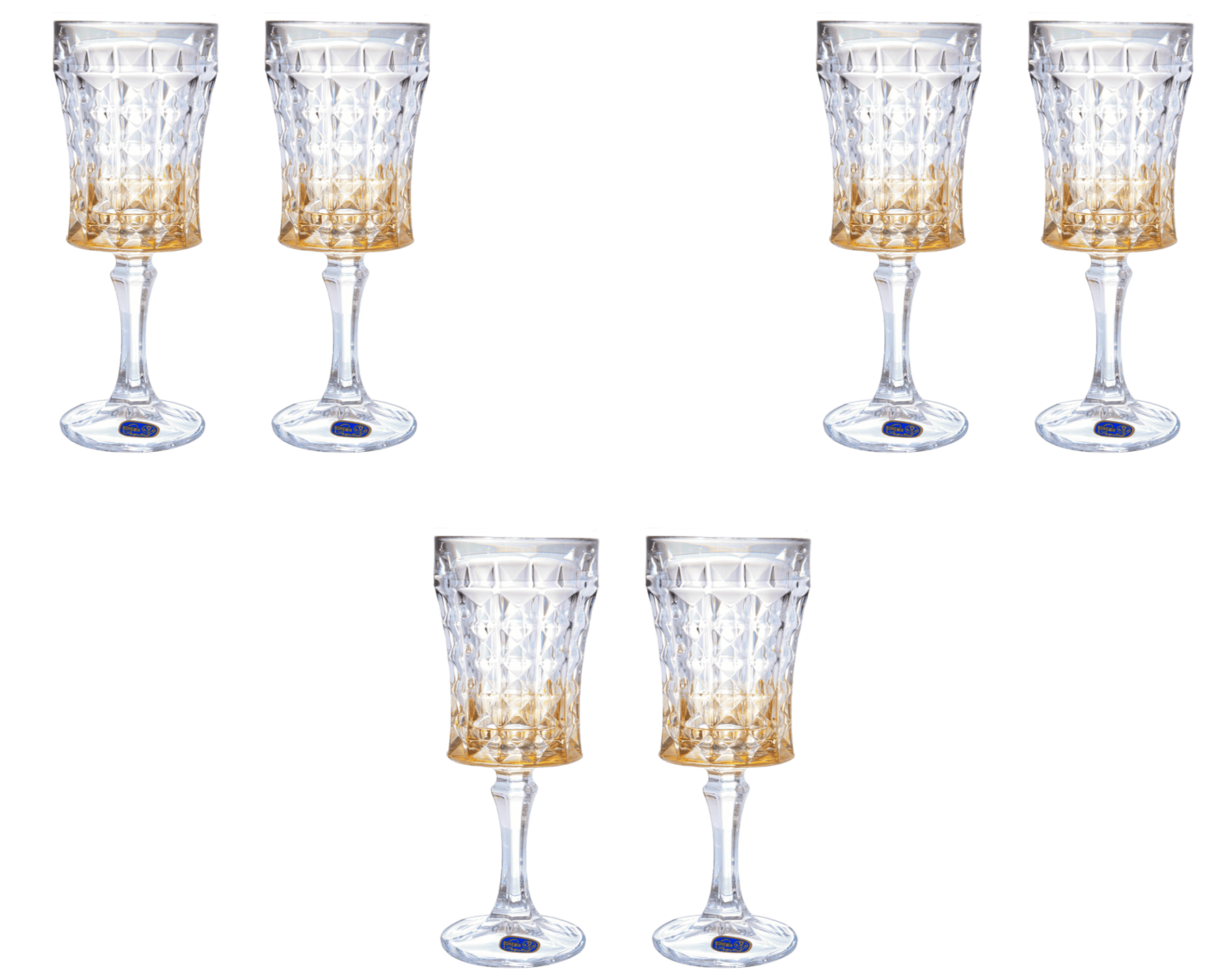 Bohemia Crystal - Goblet Diamond Glass Set 6 Pieces - Grey & Gold - 200ml - Crystal