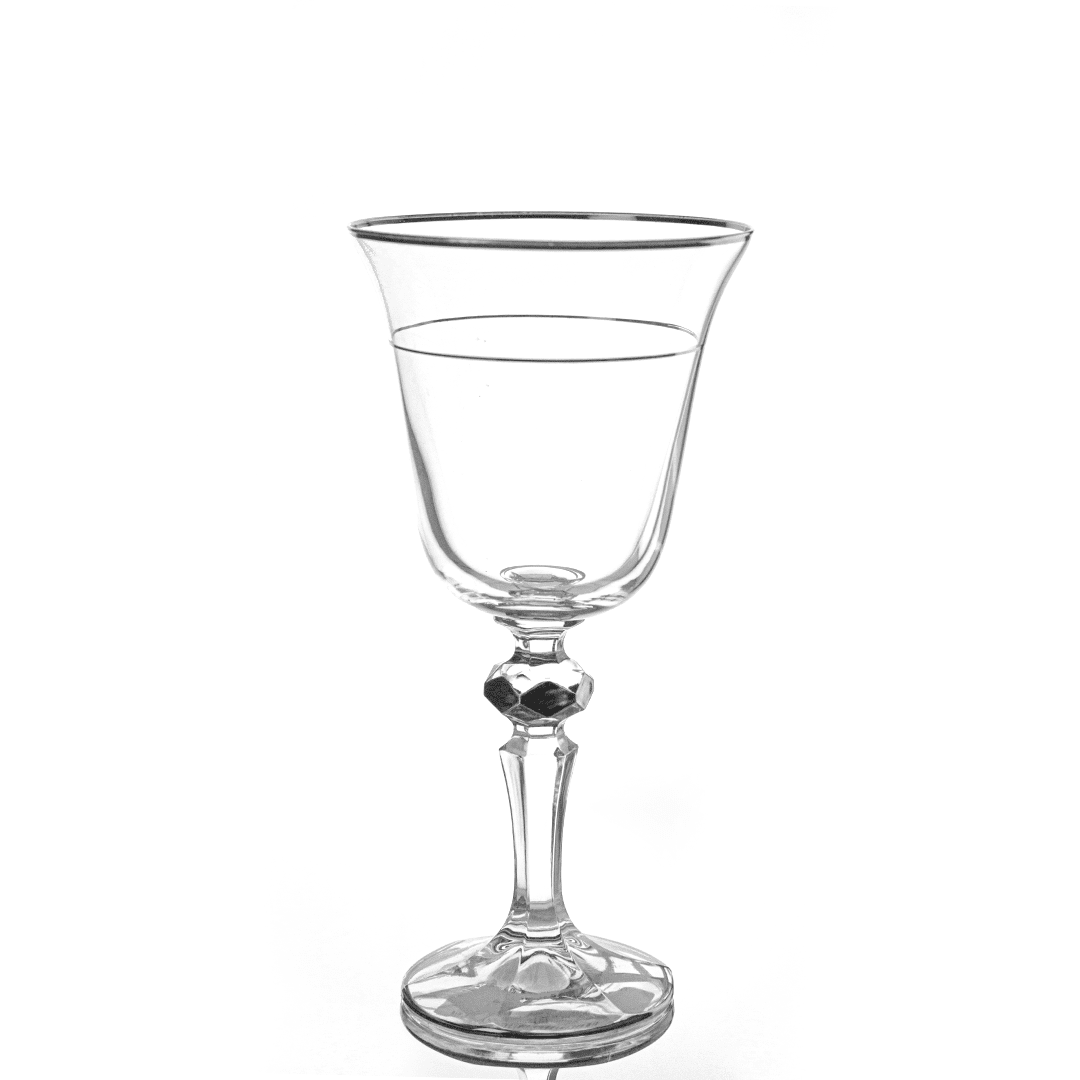 Bohemia Crystal - Goblet Glass Set 6 Pcs - Silver Rim - 200ml
