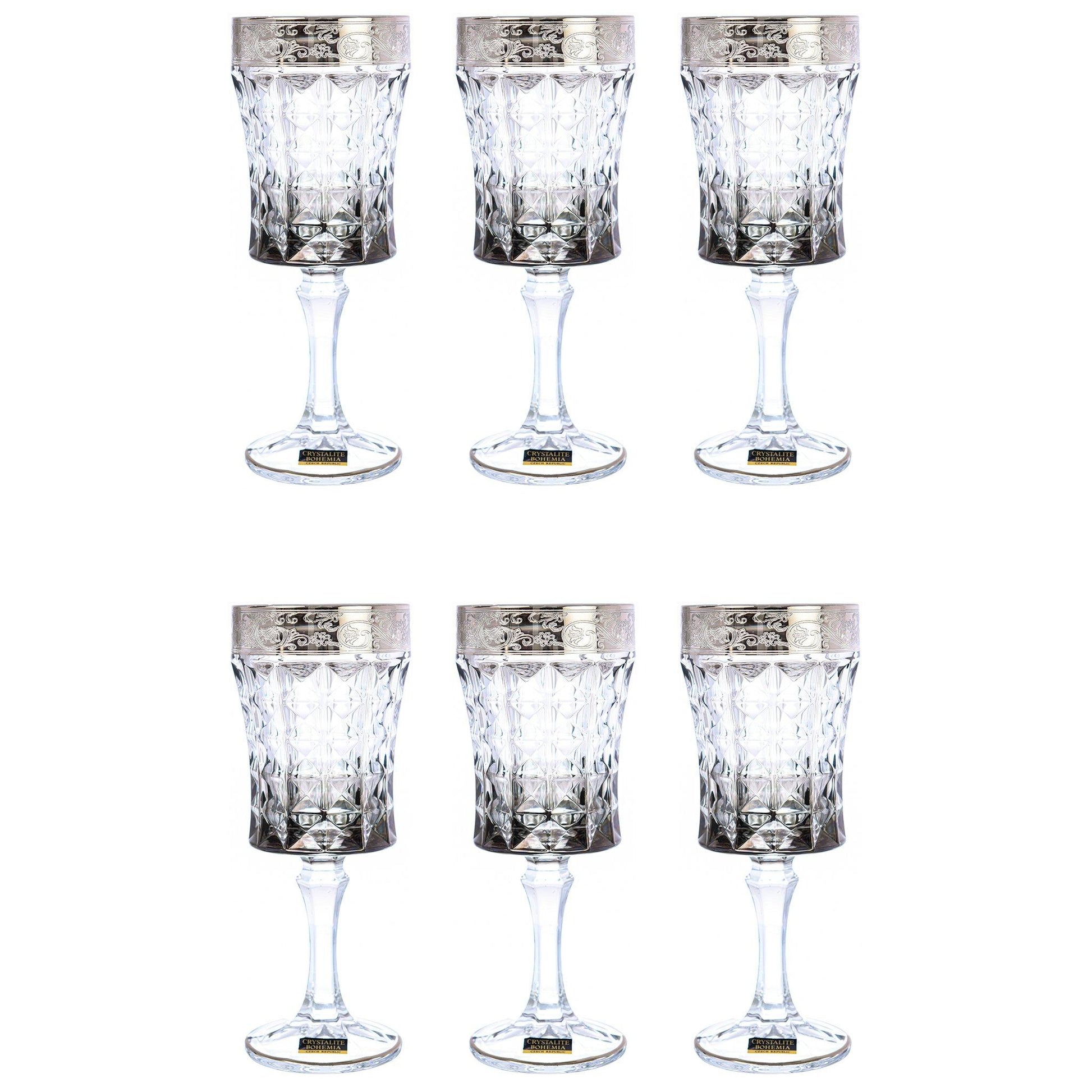 Bohemia Crystal - Goblet Glass Set 6 Pieces - Grey & Silver - 200ml - Crystal