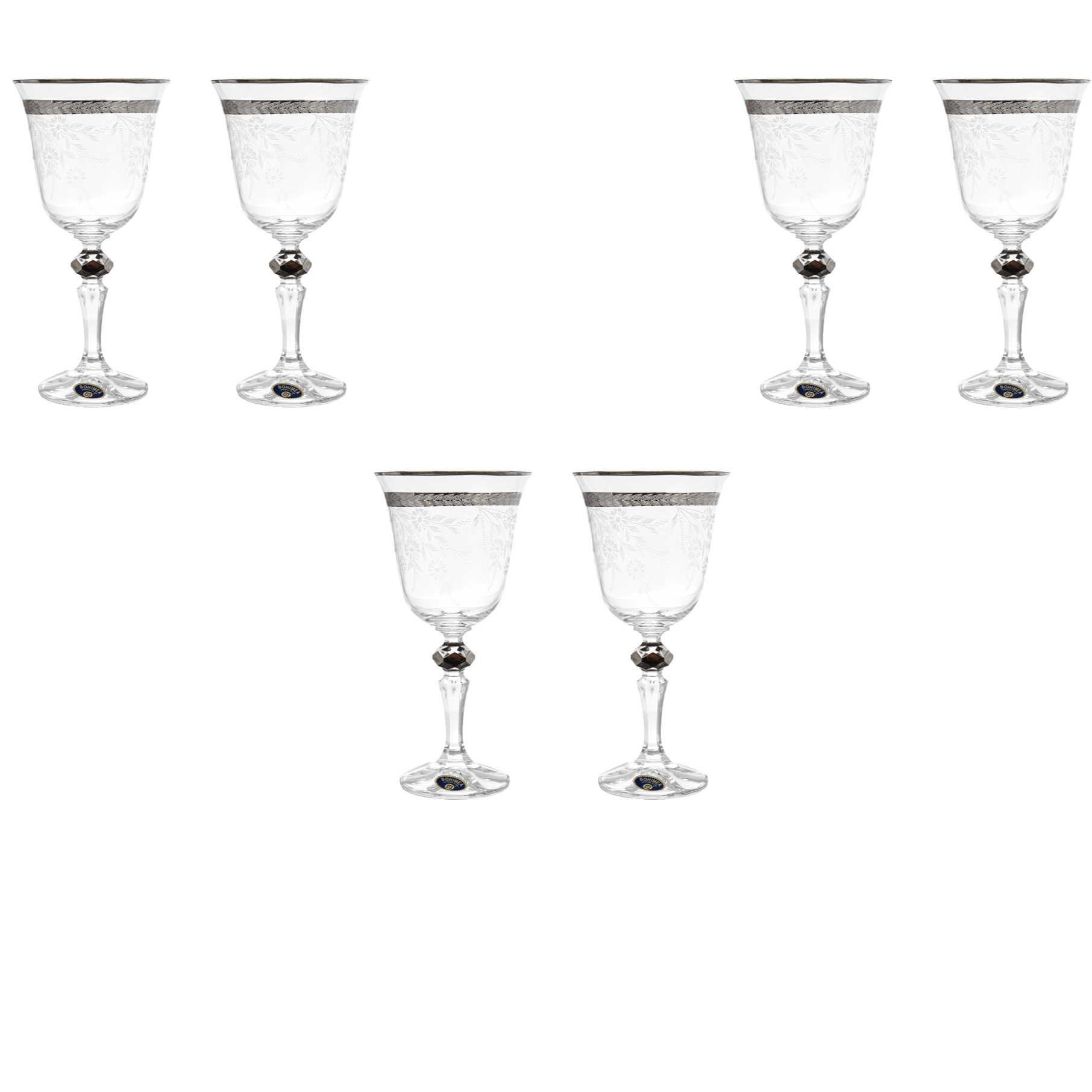 Bohemia Crystal - Goblet Glass Set 6 Pieces - Silver - 220ml - 2700010700