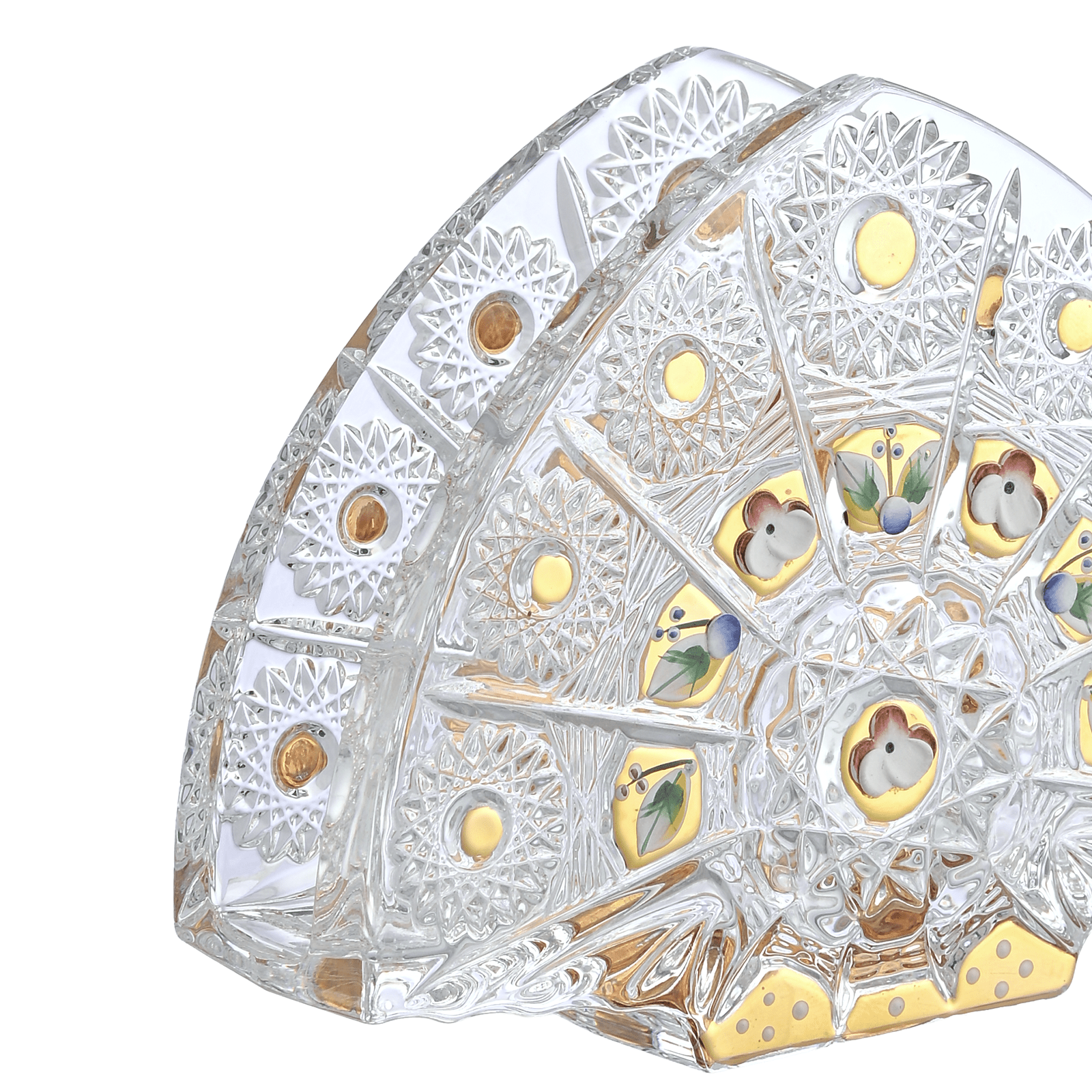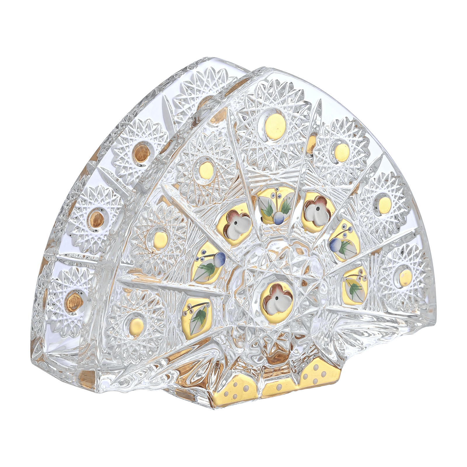 Bohemia Crystal - Hand Cut Napkin Holder - Gold & Floral Design - 14x5x11cm