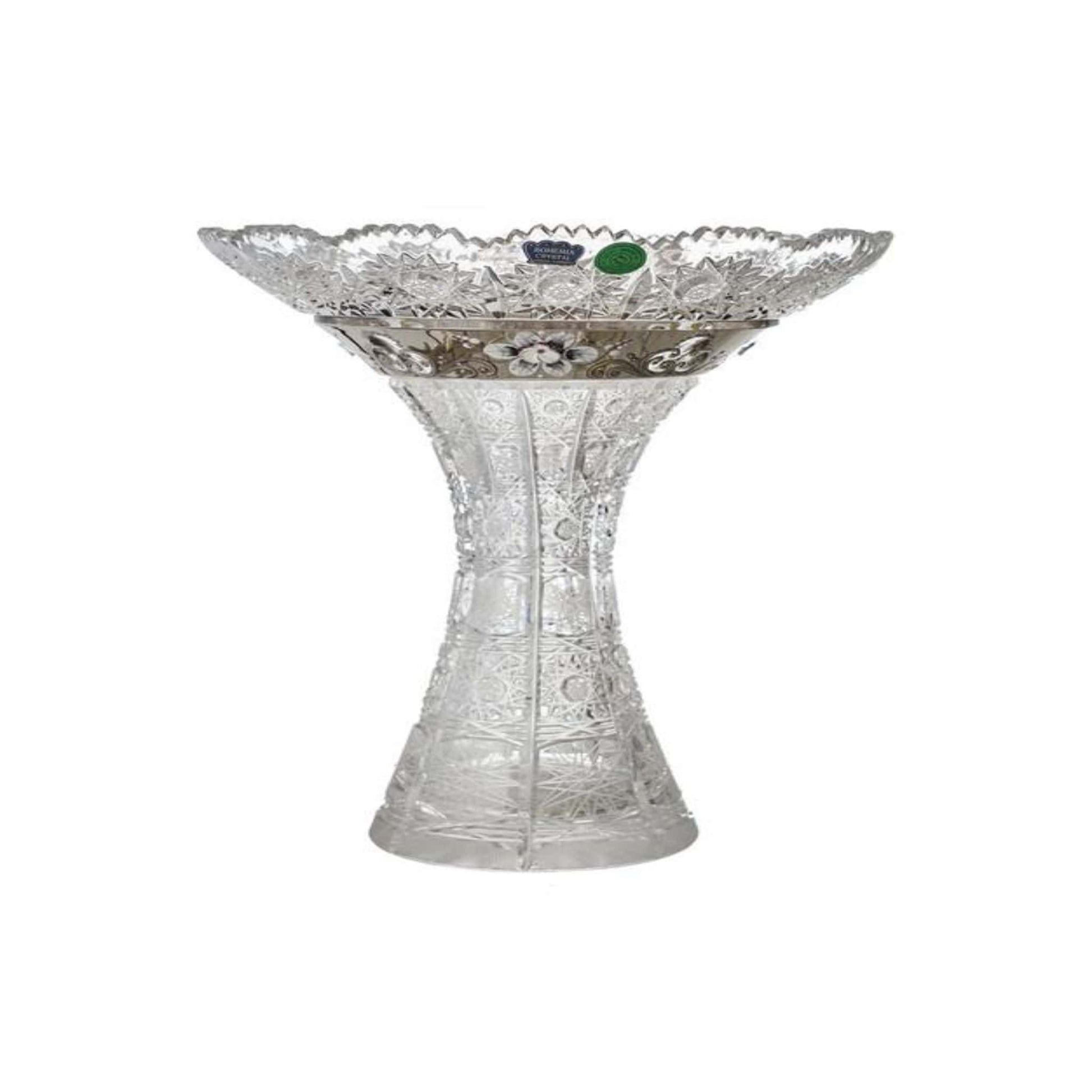 Item: Bohemia Crystal Hand Cut Vase - Silver & Flowers