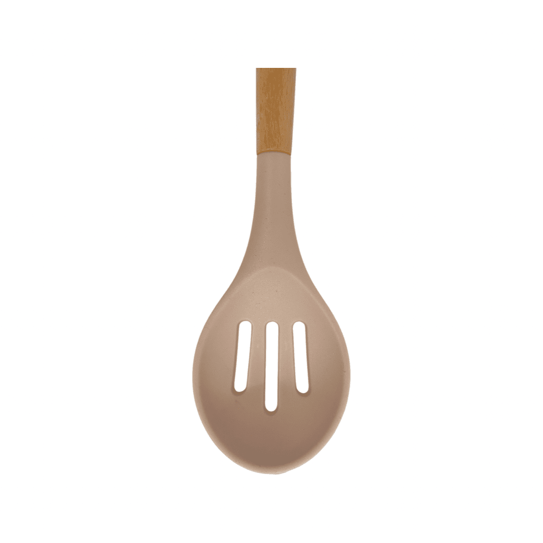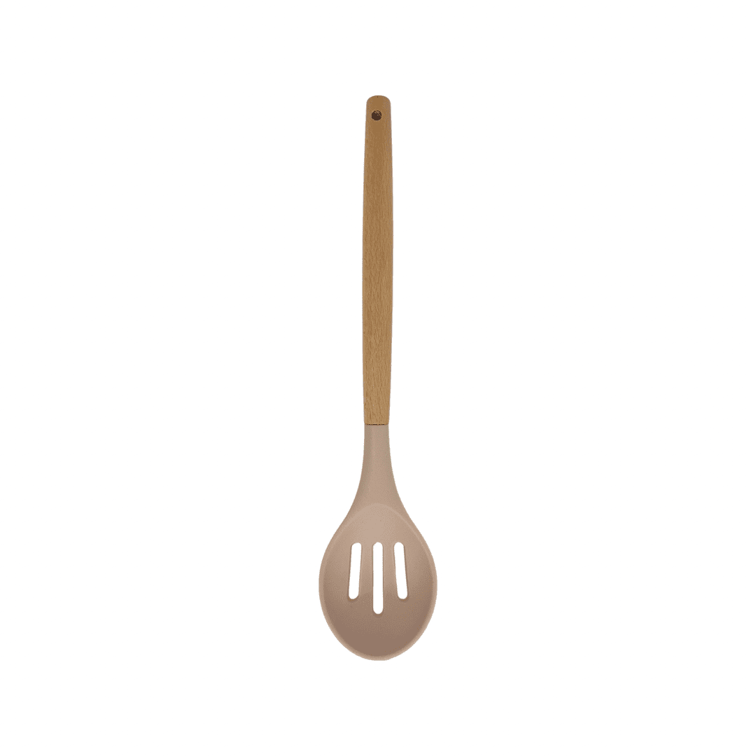 Item: Silicone Kitchen Food Spoon Skimmer With Wooden Handle - Beige