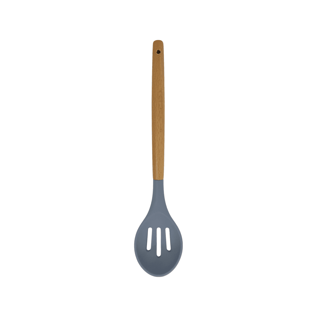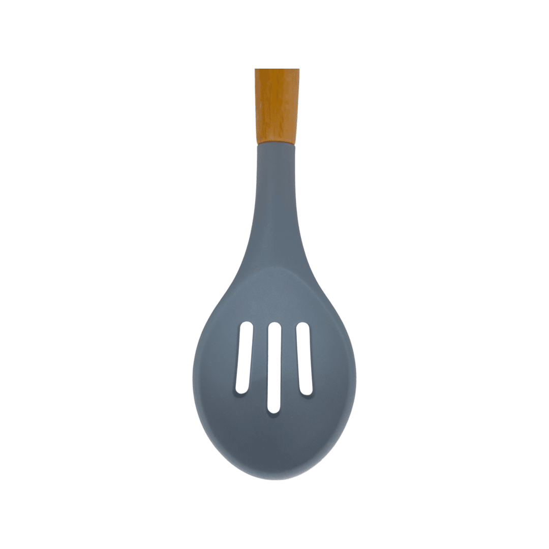 Item: Silicone Kitchen Food Spoon Skimmer With Wooden Handle - Grey