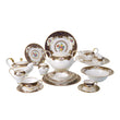 Falkenporzellan - Dinner Set 112 Pieces - Bone China - Dark Blue & Gold with Flowers