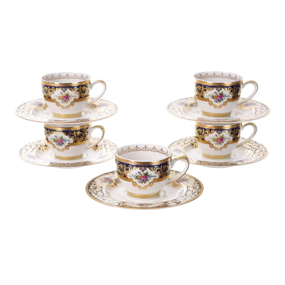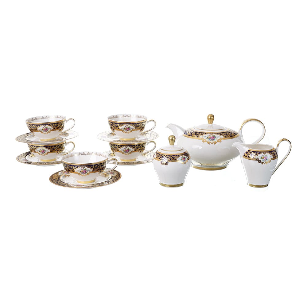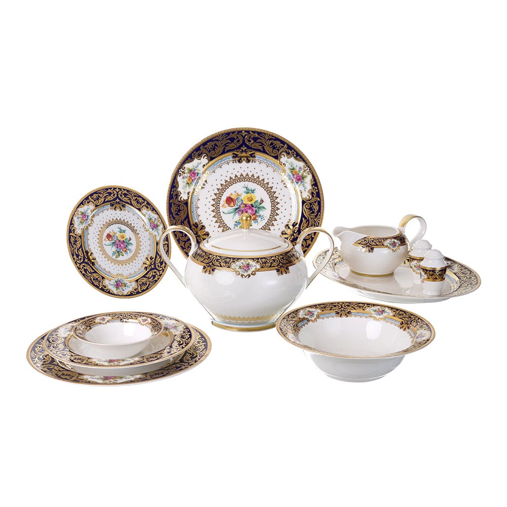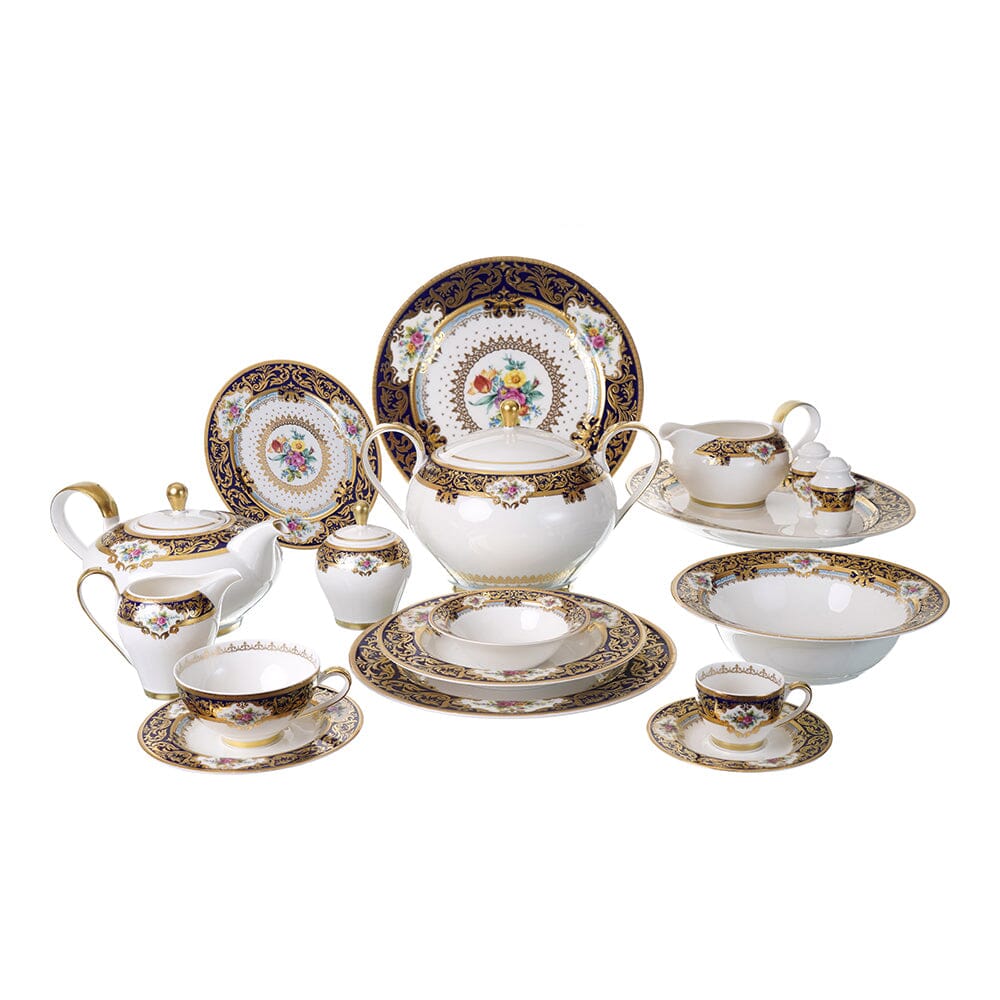 Item: Dinner Set 112 Pieces - Dark Blue & Gold with Flowers