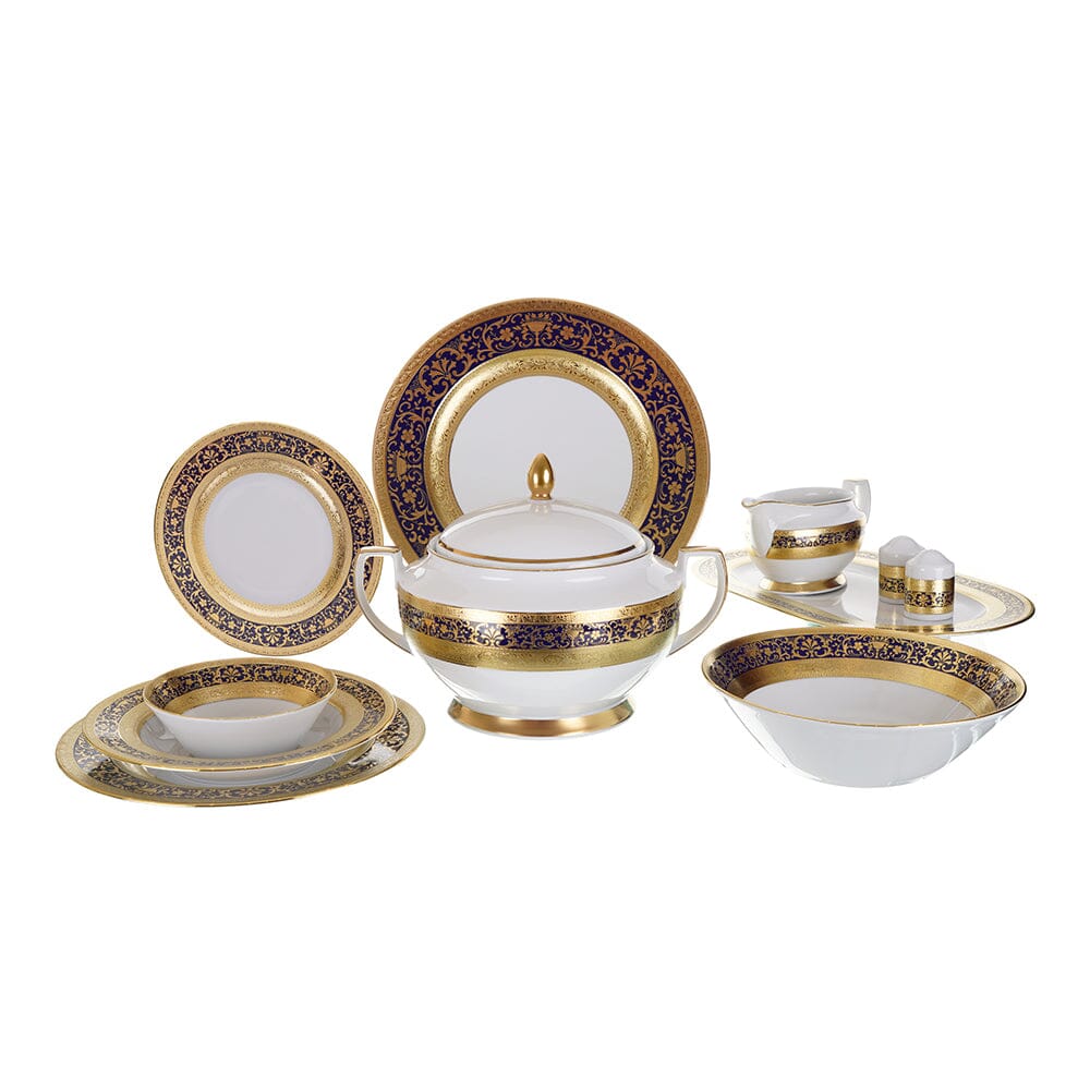 Item: Dinner Set 112 Pieces - Blue & Gold