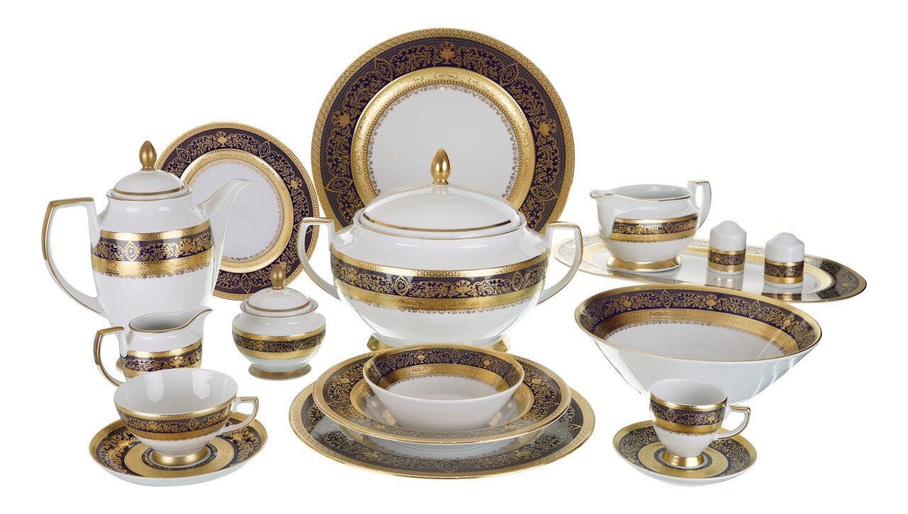 Falkenporzellan Dinner Set 112pcs - Porcelain - Cobalt Blue & Gold - 13000287