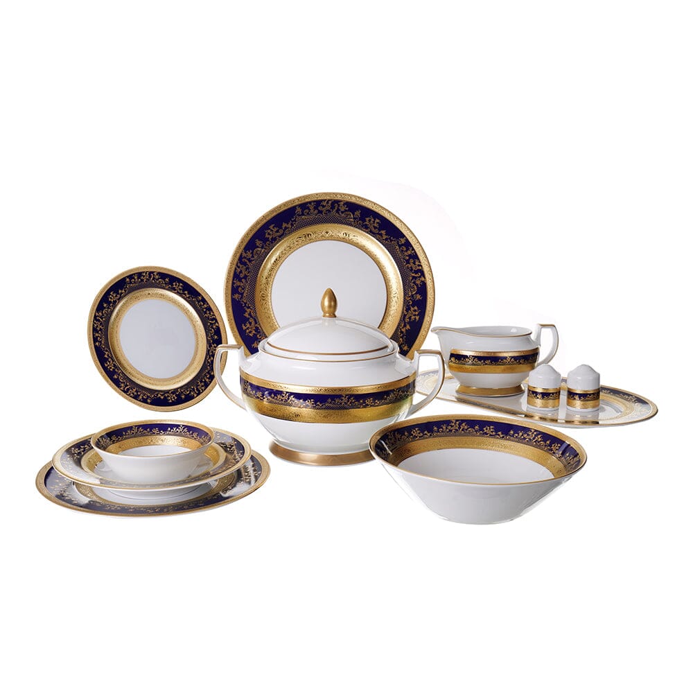 Item: Dinner Set 112 Pieces - Blue & Gold