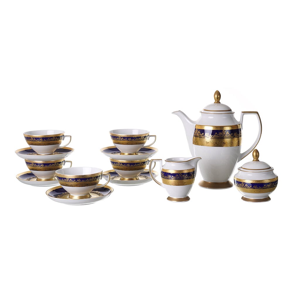 Falkenporzellan - Dinner Set 112 Pieces - Porcelain - Blue & Gold