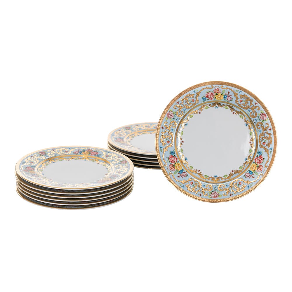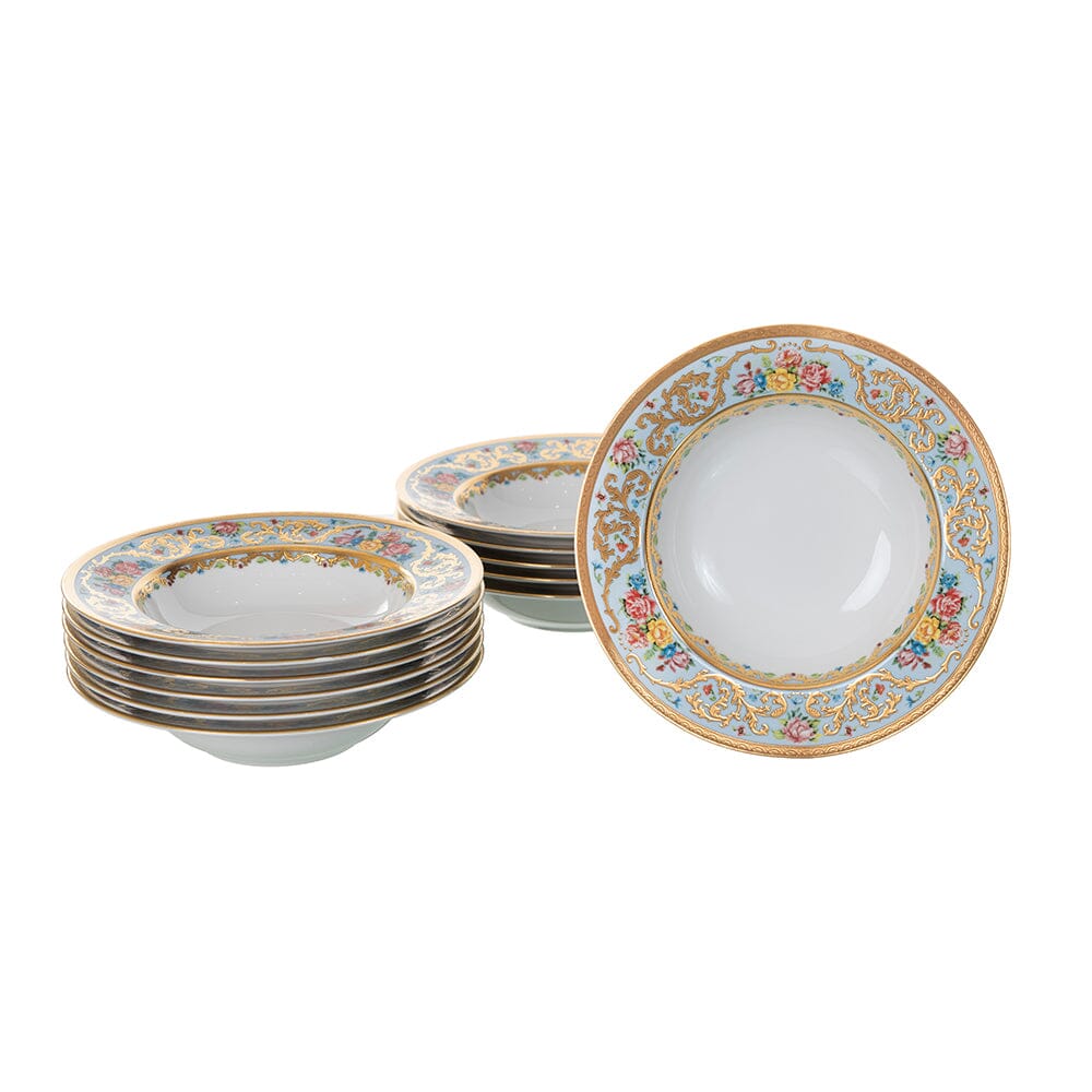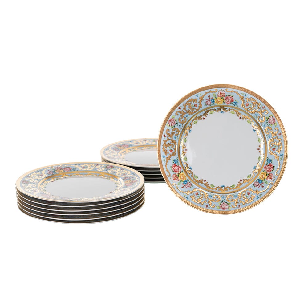 Item: Dinner Set 112 Pieces - Light Blue, Flowers & Gold