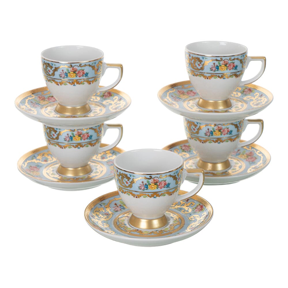 Falkenporzellan - Dinner Set 112 Pieces - Porcelain - Light Blue, Flowers & Gold