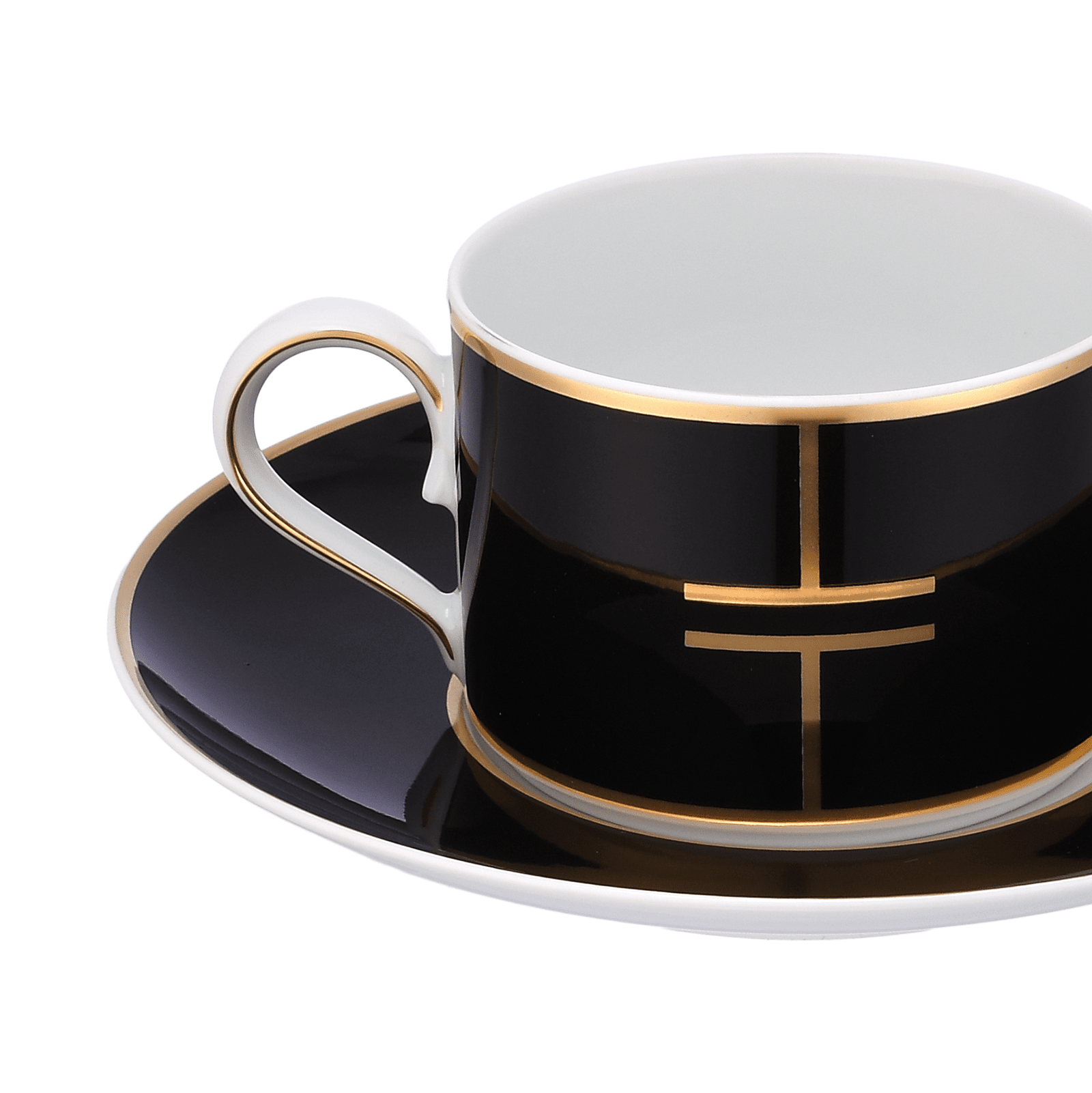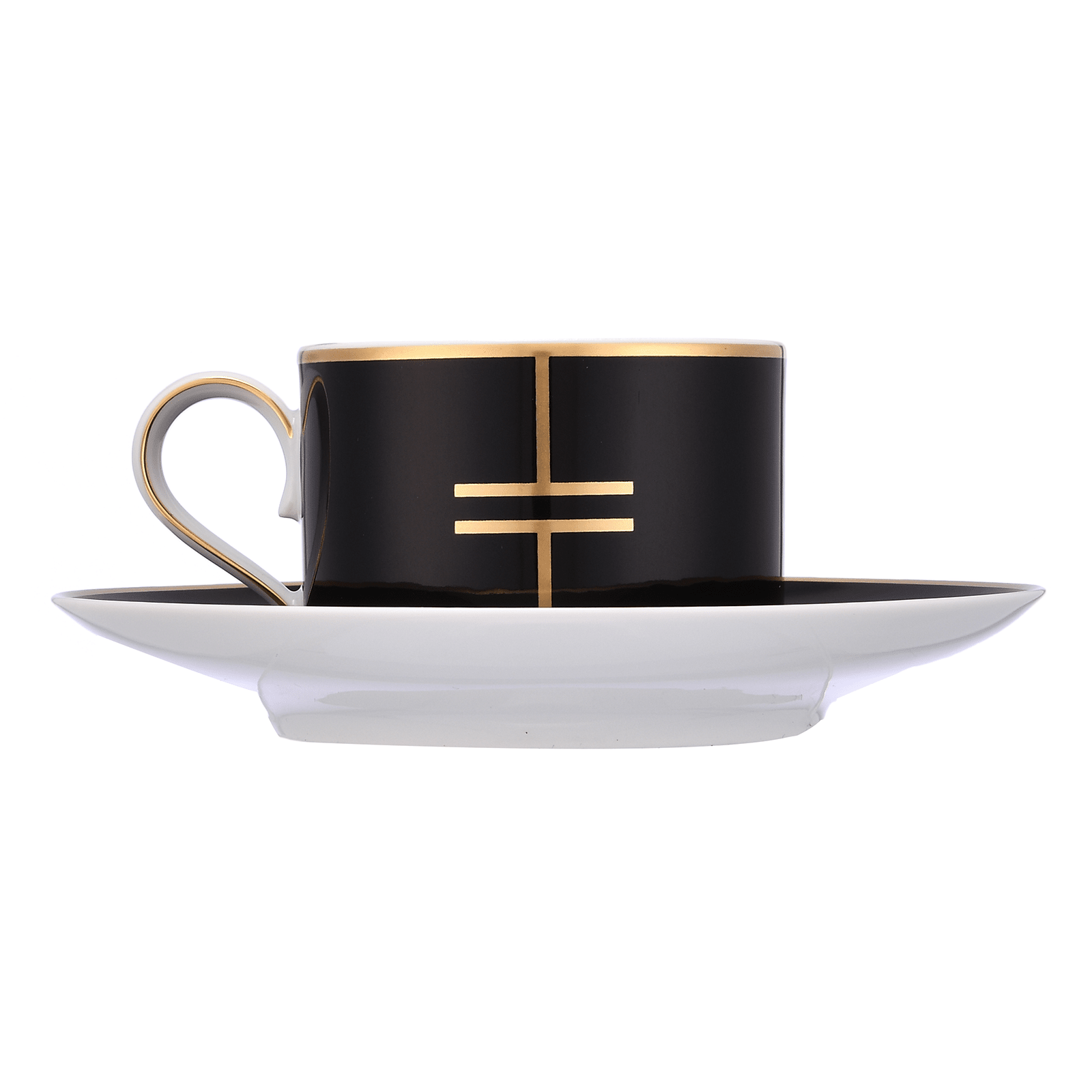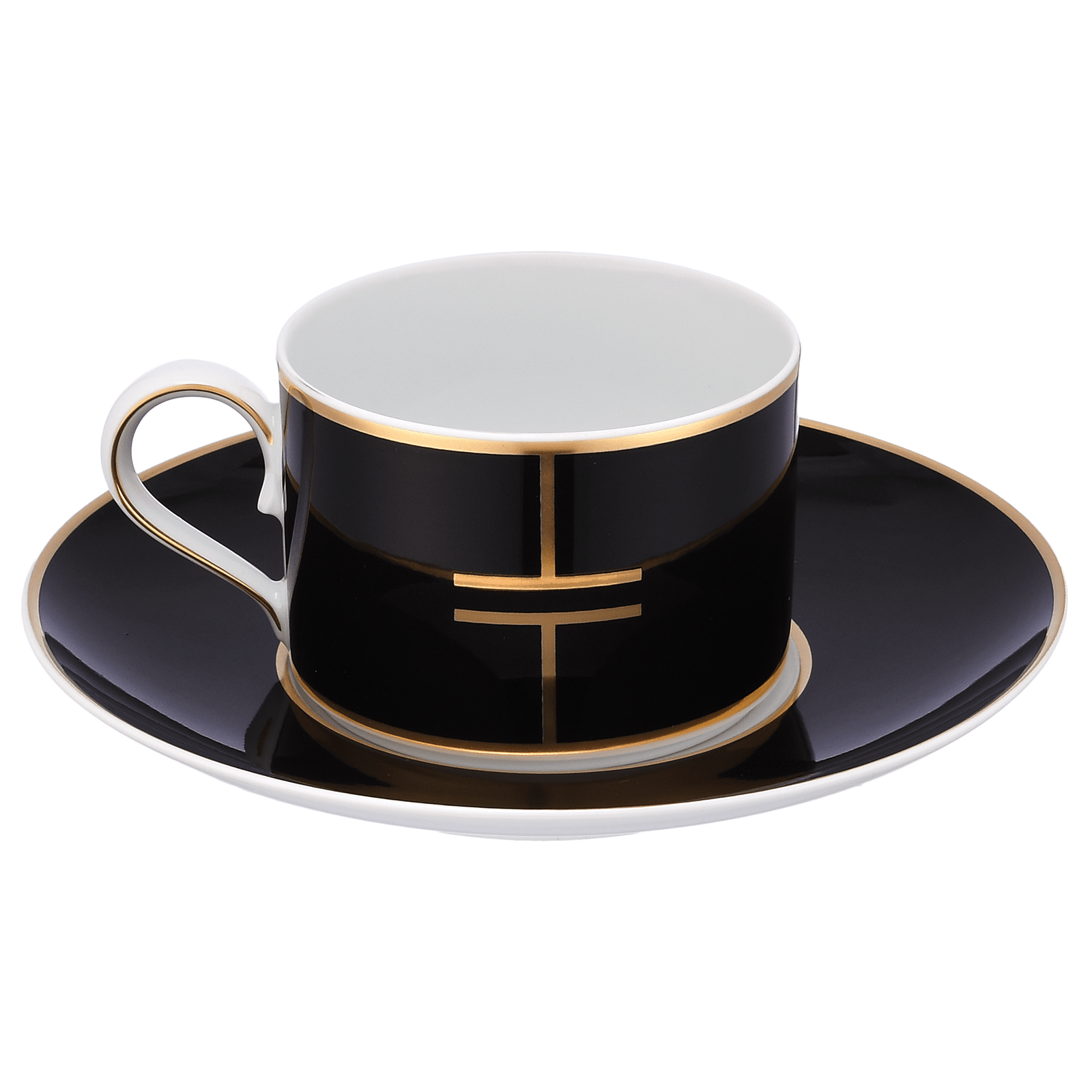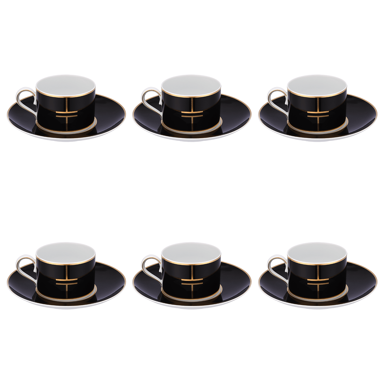 Falkenporzellan - Tea Set 6 Pieces - Black & Gold - Porcelain