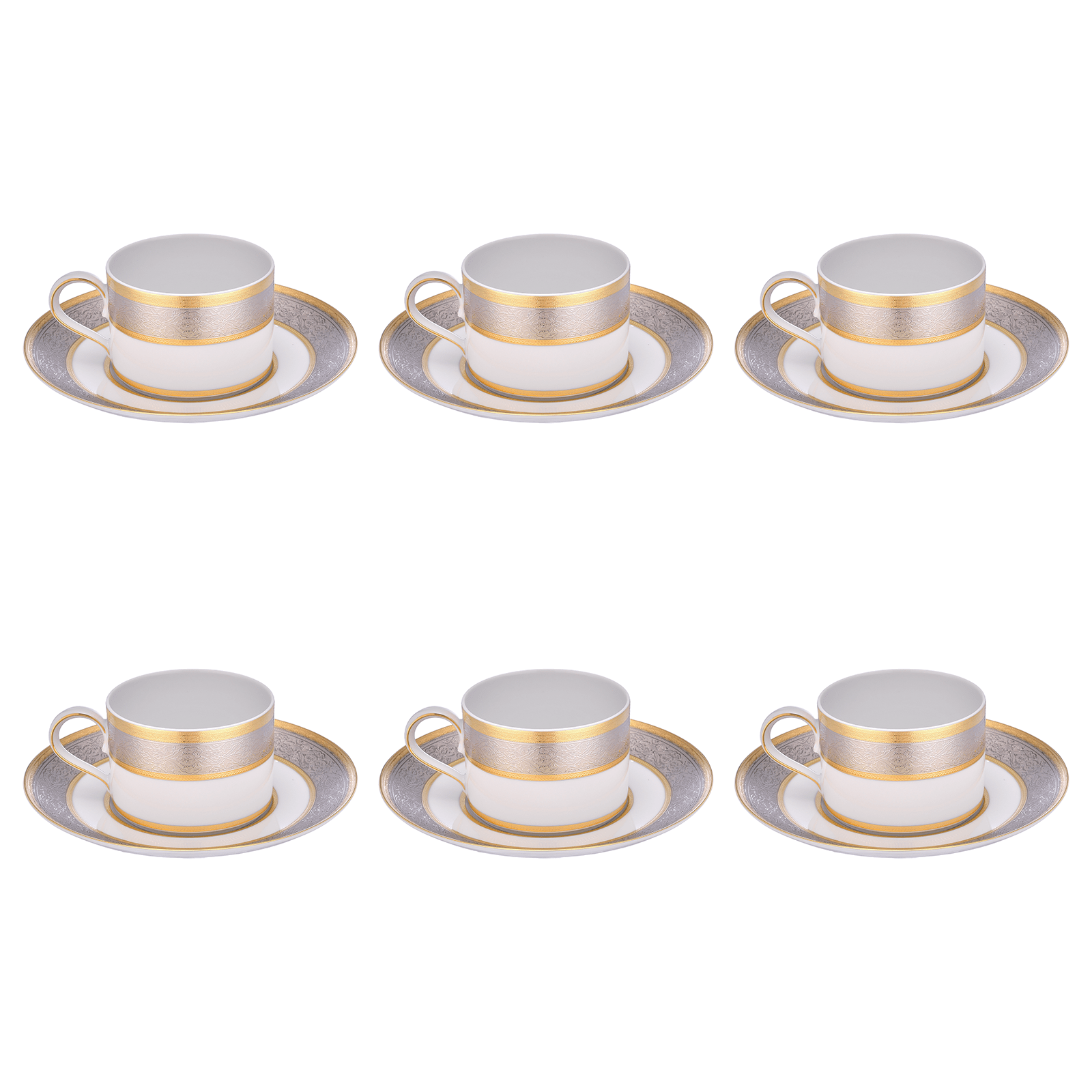 Falkenporzellan - Tea Set 6 Pieces - Silver & Gold - Porcelain