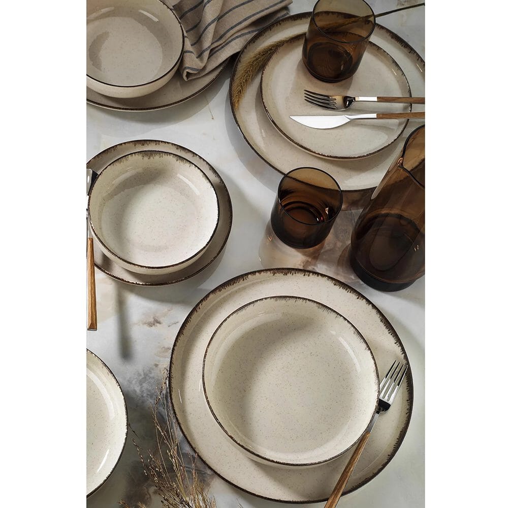 Kutahya - Daily-use Dinner Set 24 Pieces - Porcelain - Beige with Brown Rim