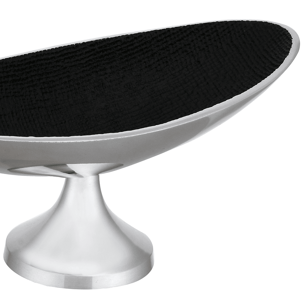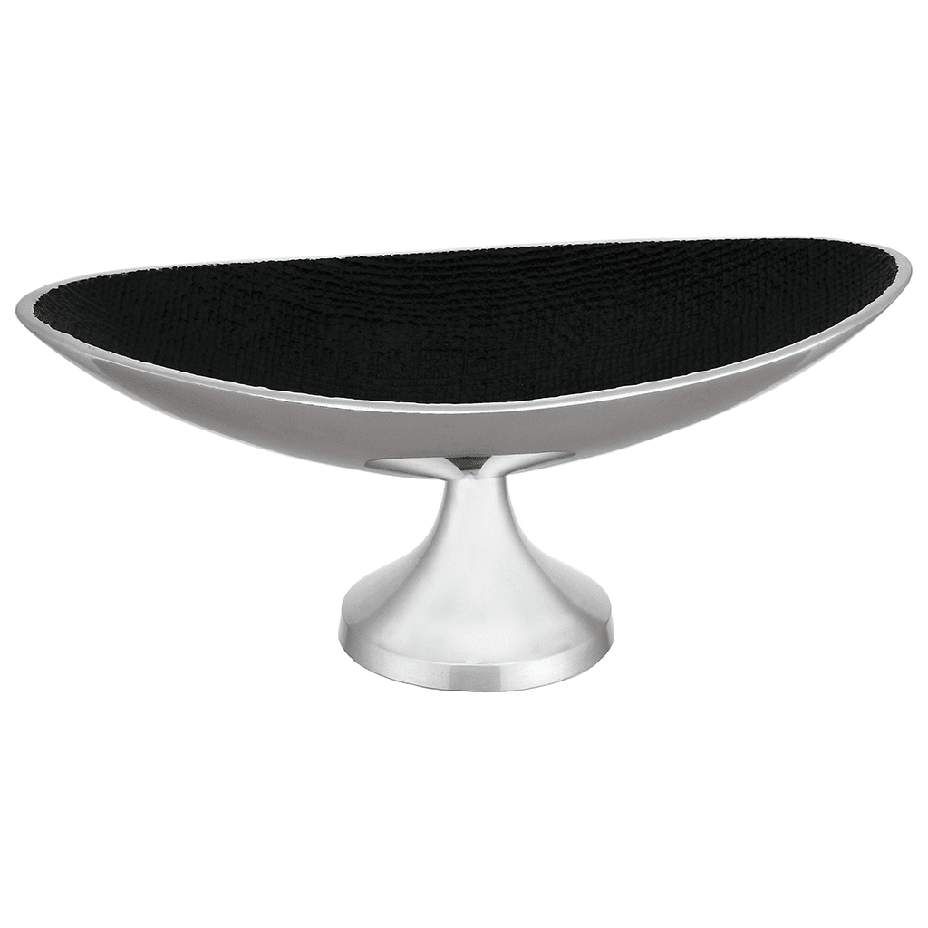 Oval Shaped Platter With Base For Snacks & Fruits - Black - Silver Plated Metal