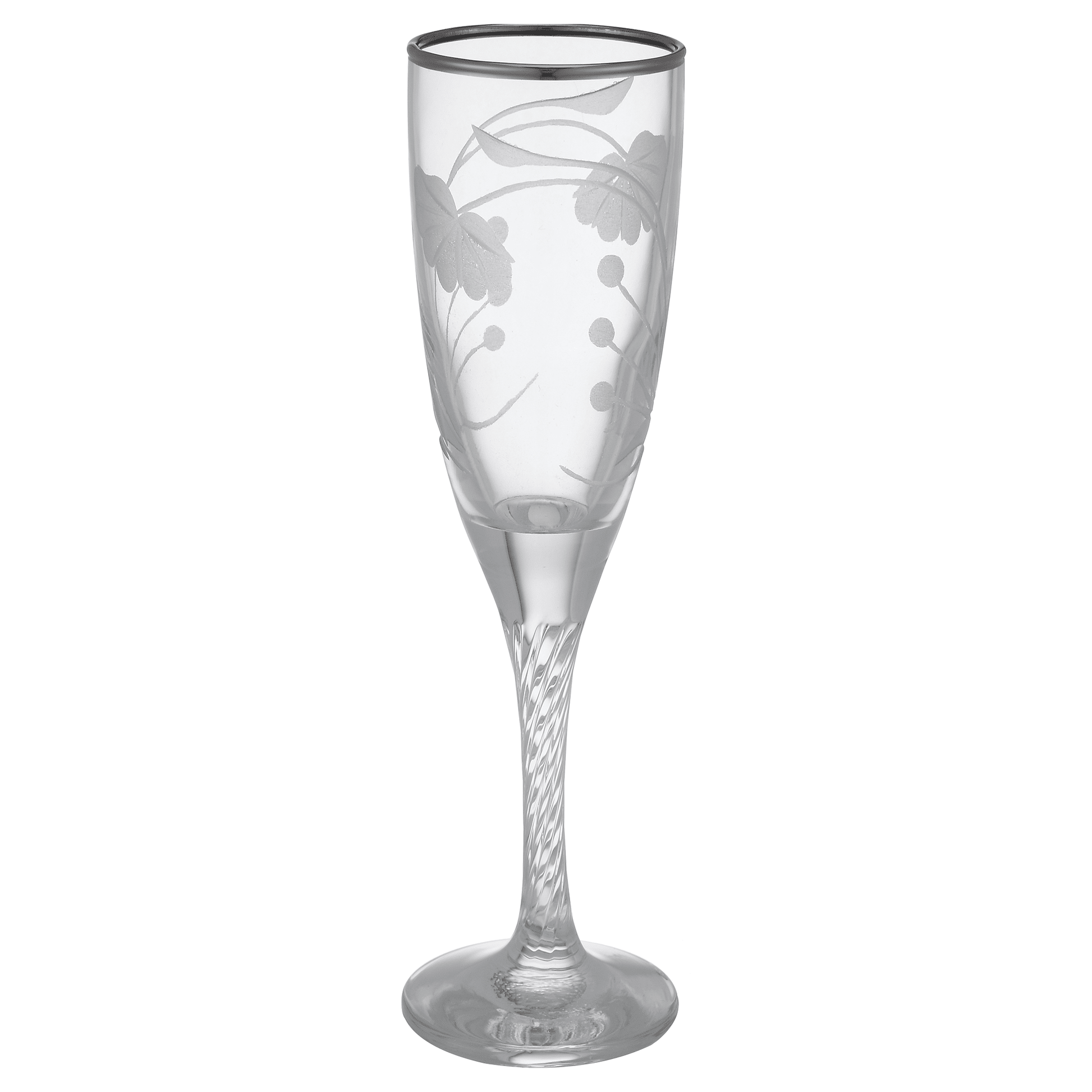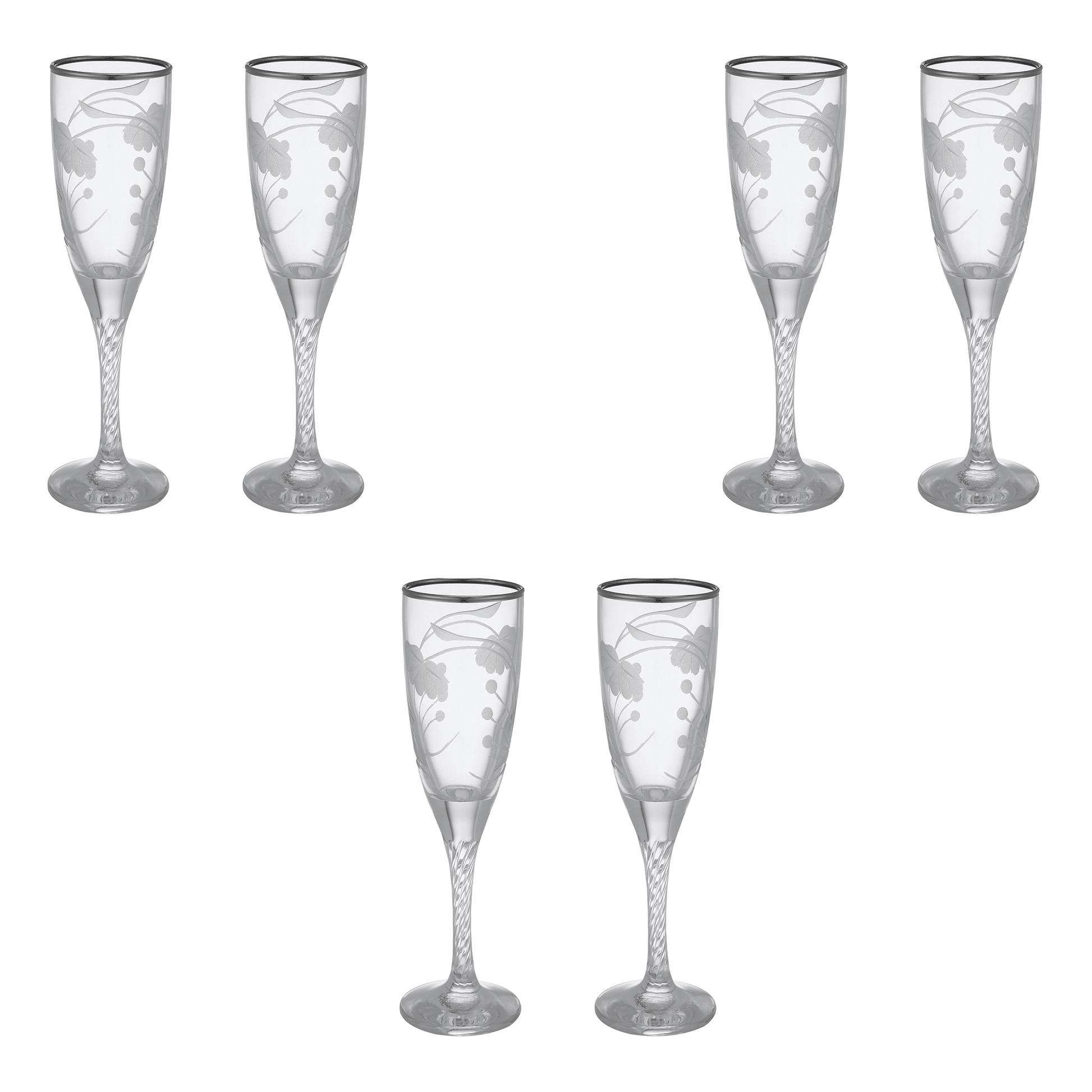 Item: Decorated Flute Glass Set 6 Pieces with Silver Rim