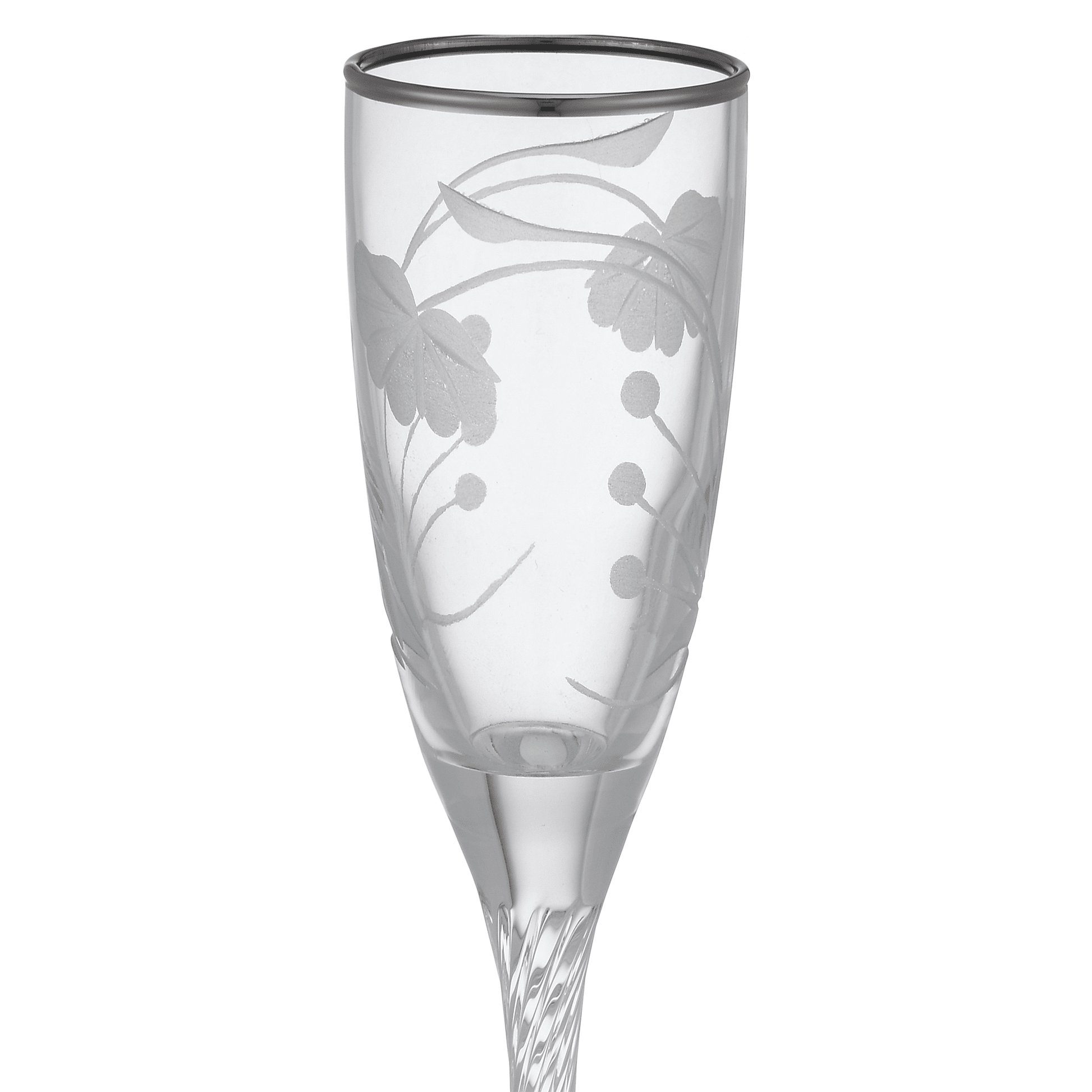 Pasabahce - Decorated Flute Glass Set 6 Pieces - Silver - 150ml - Glass