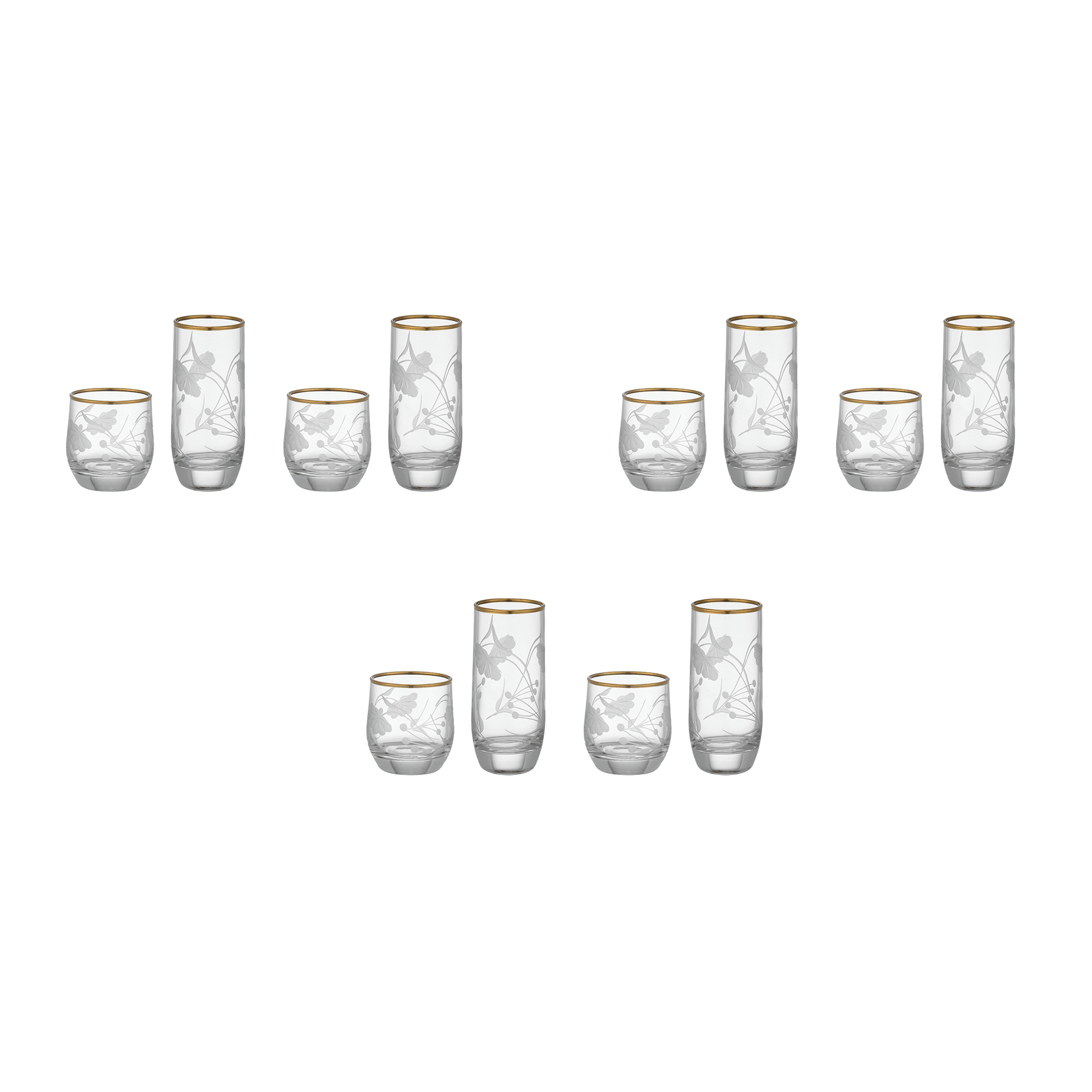 Item: Decorated Highball & Tumbler Glass Set 12 Pieces with Gold Rim