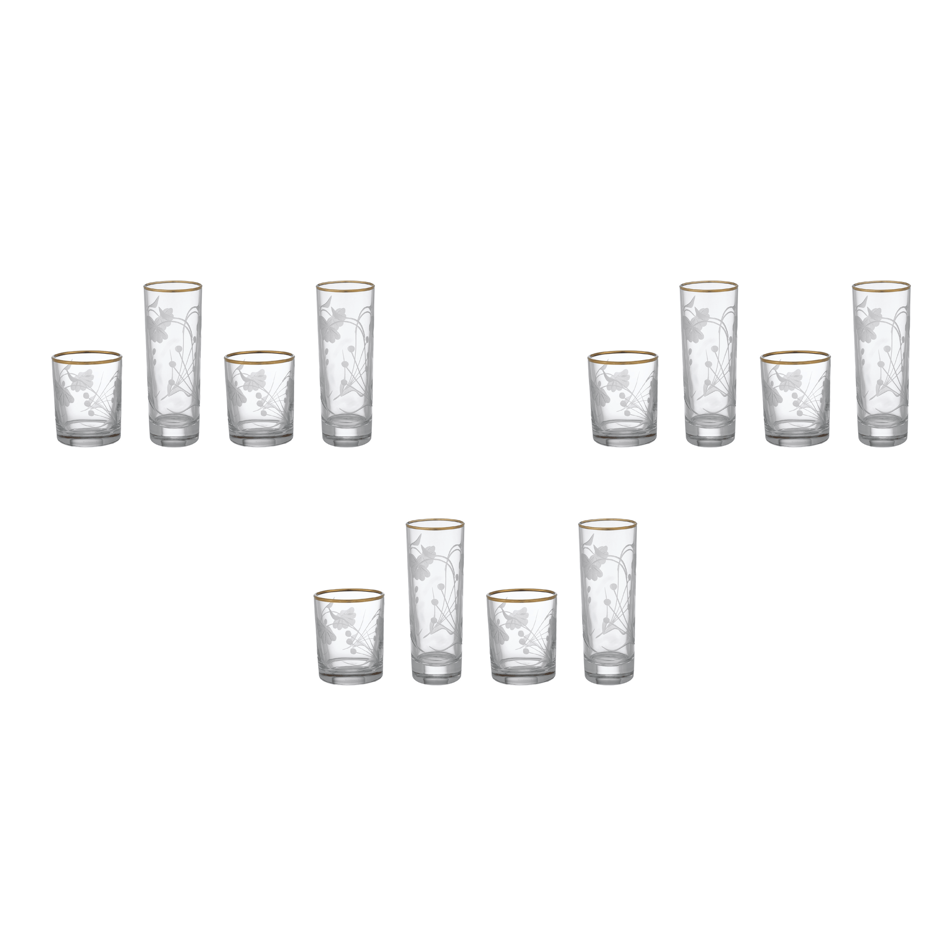 Item: Decorated Highball & Tumbler Glass Set 12 Pieces with Gold Rim