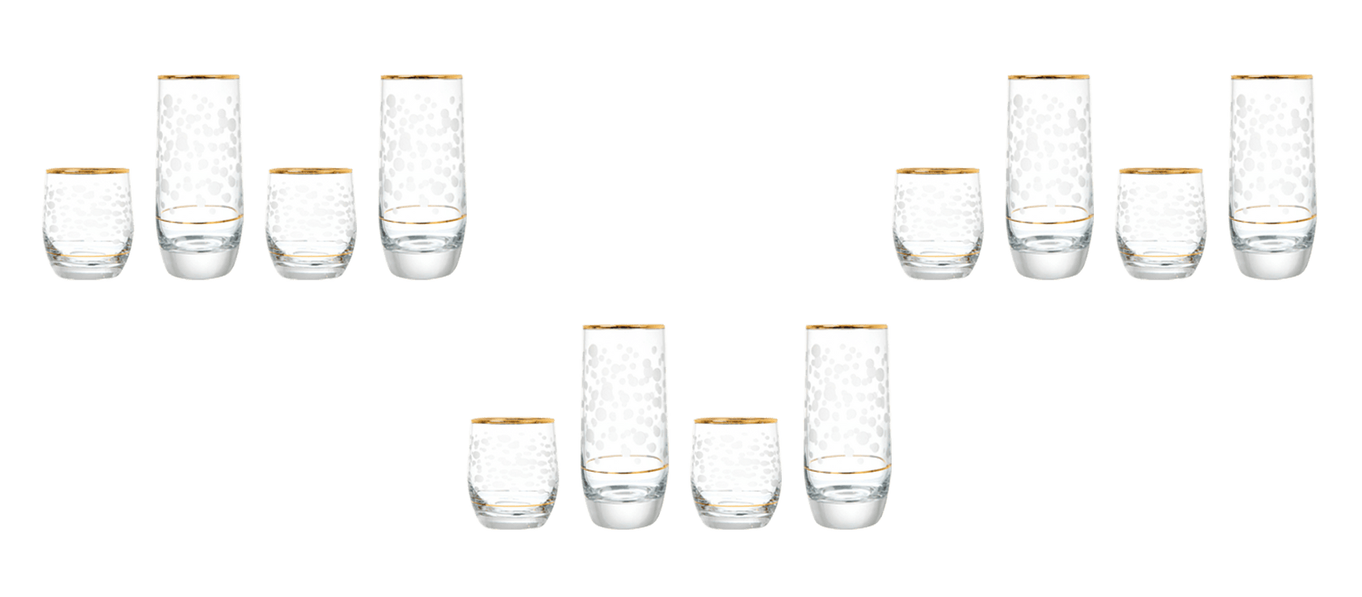 Item: Highball & Tumbler Glass Set 12 Pieces - Gold