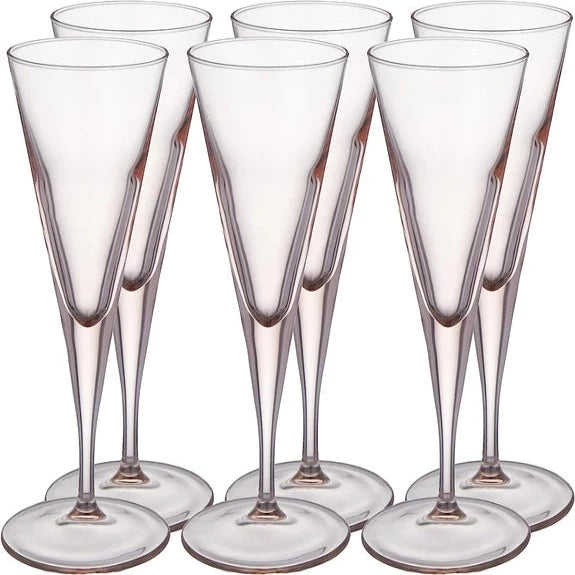Item: V-Line Champagne Flute Glass Set 6 Pieces - Pink