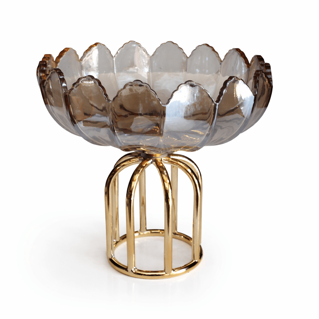 Item: Round Fruit Footed Plate With Metal Base