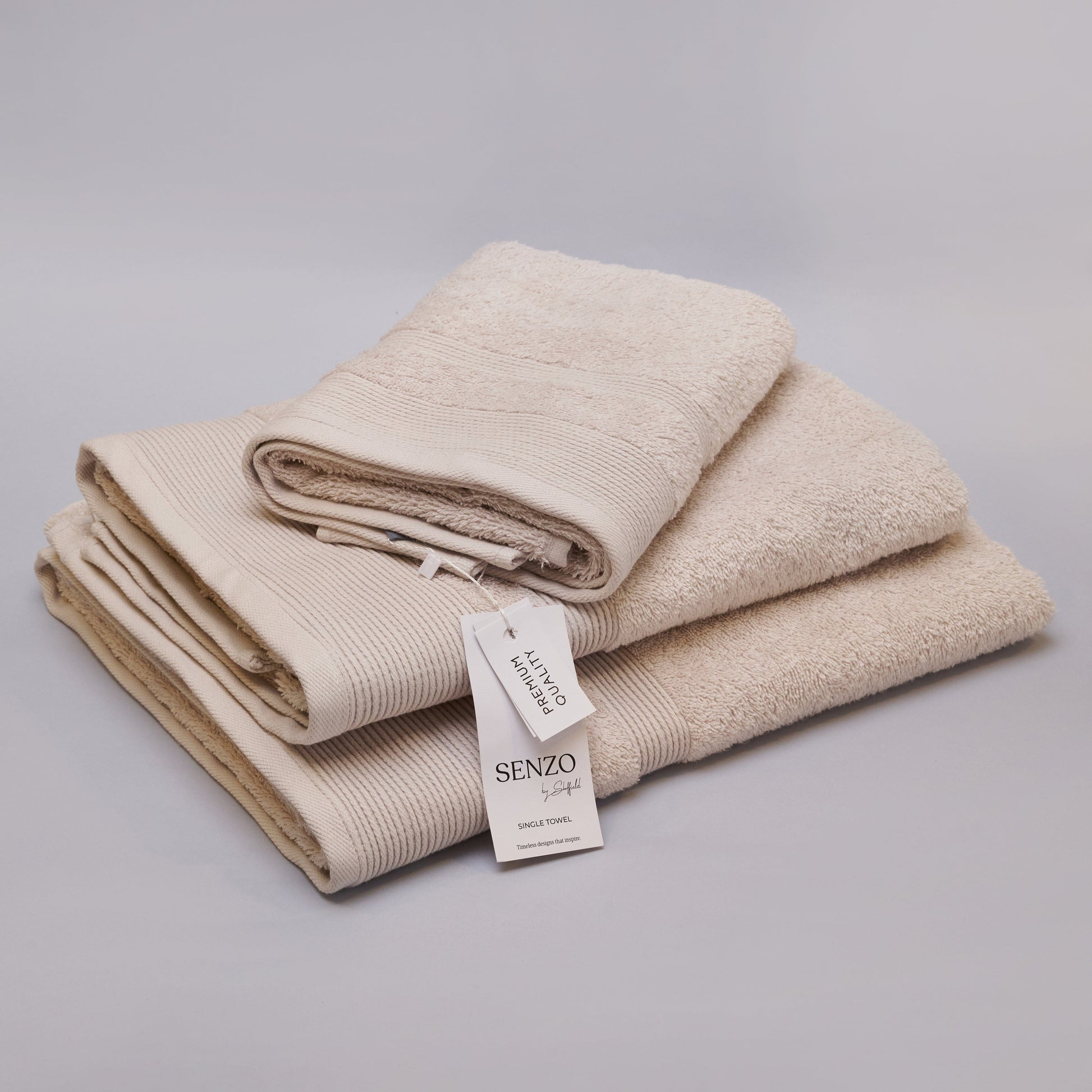 Senzo - Bath Towel Set 3 Pieces - Beige - 100% Egyptian Cotton