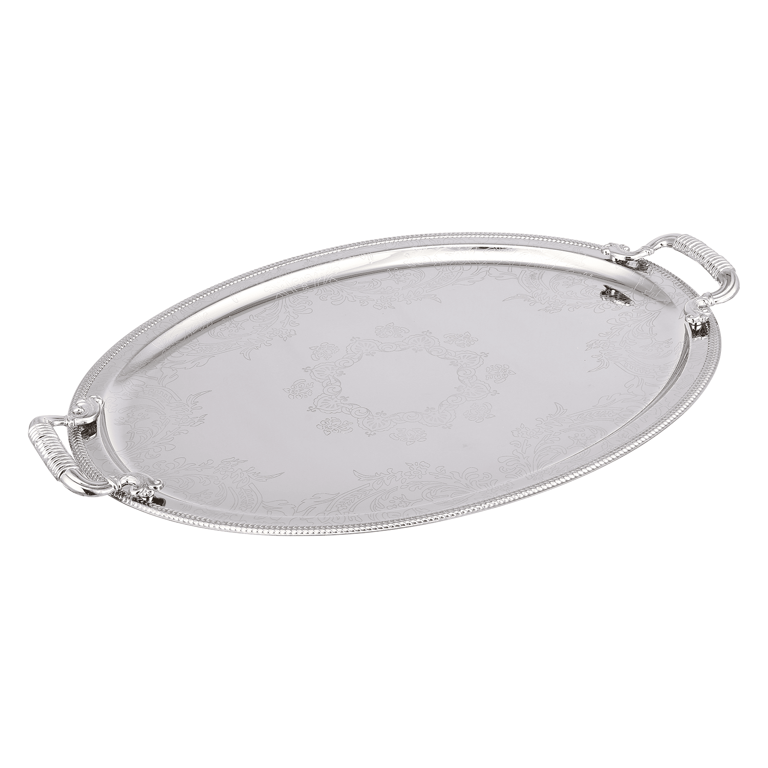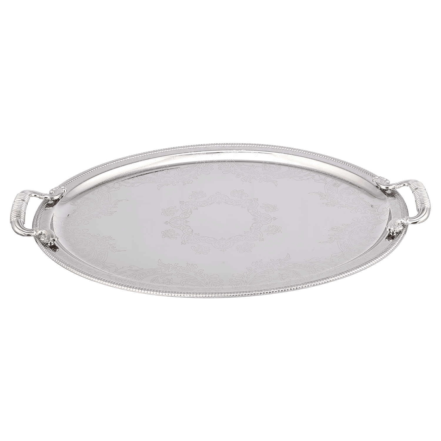 Item: Oval Tray Set with Handles 2 Pieces - Silver
