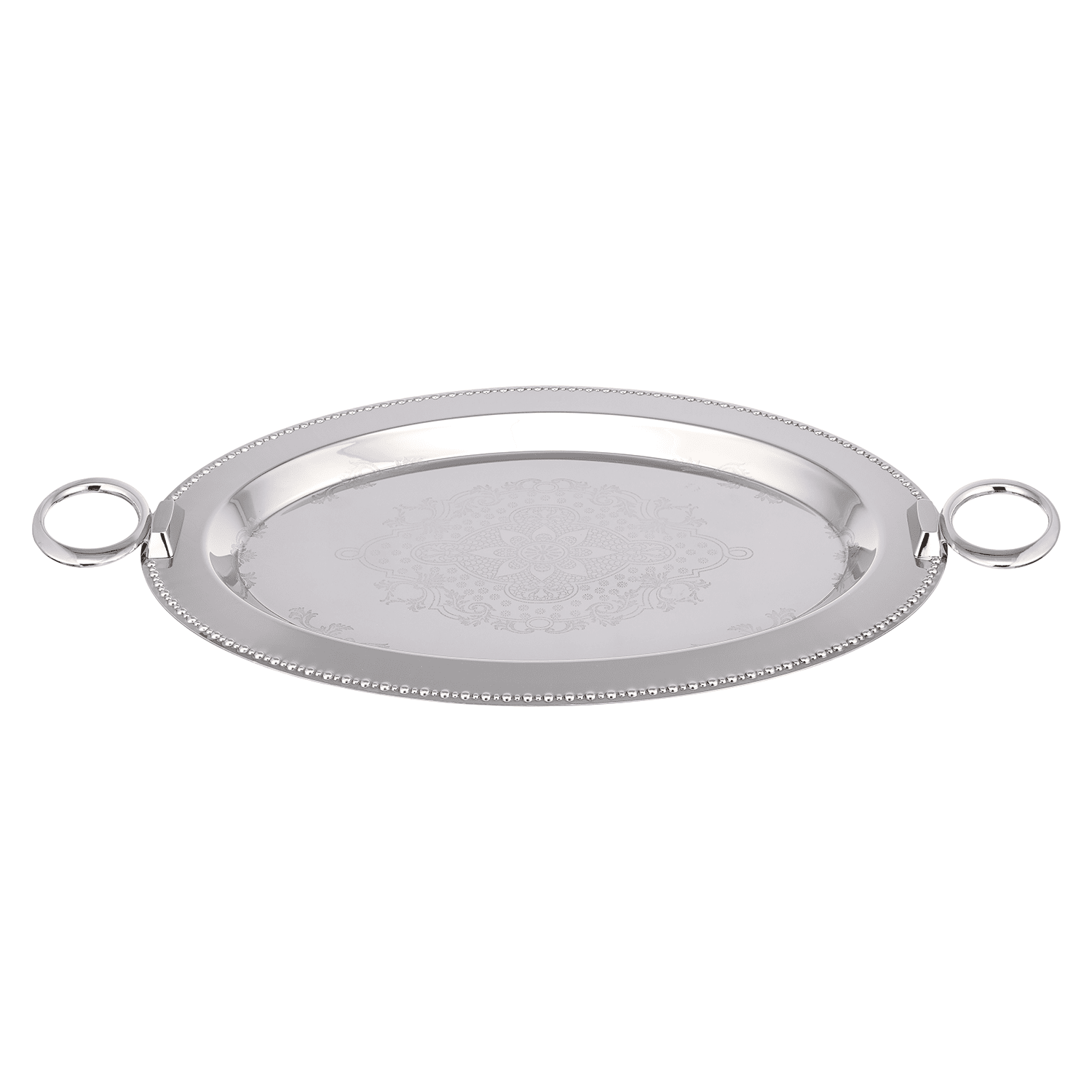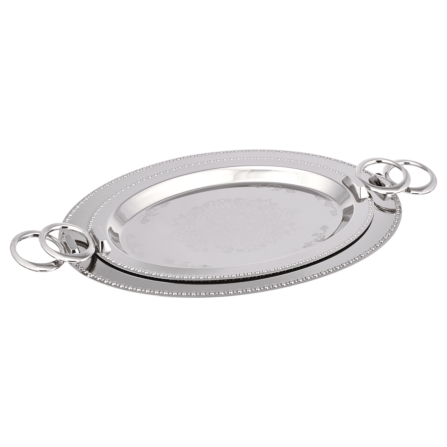 Item: Oval Tray Set with Handles 2 Pieces - Silver