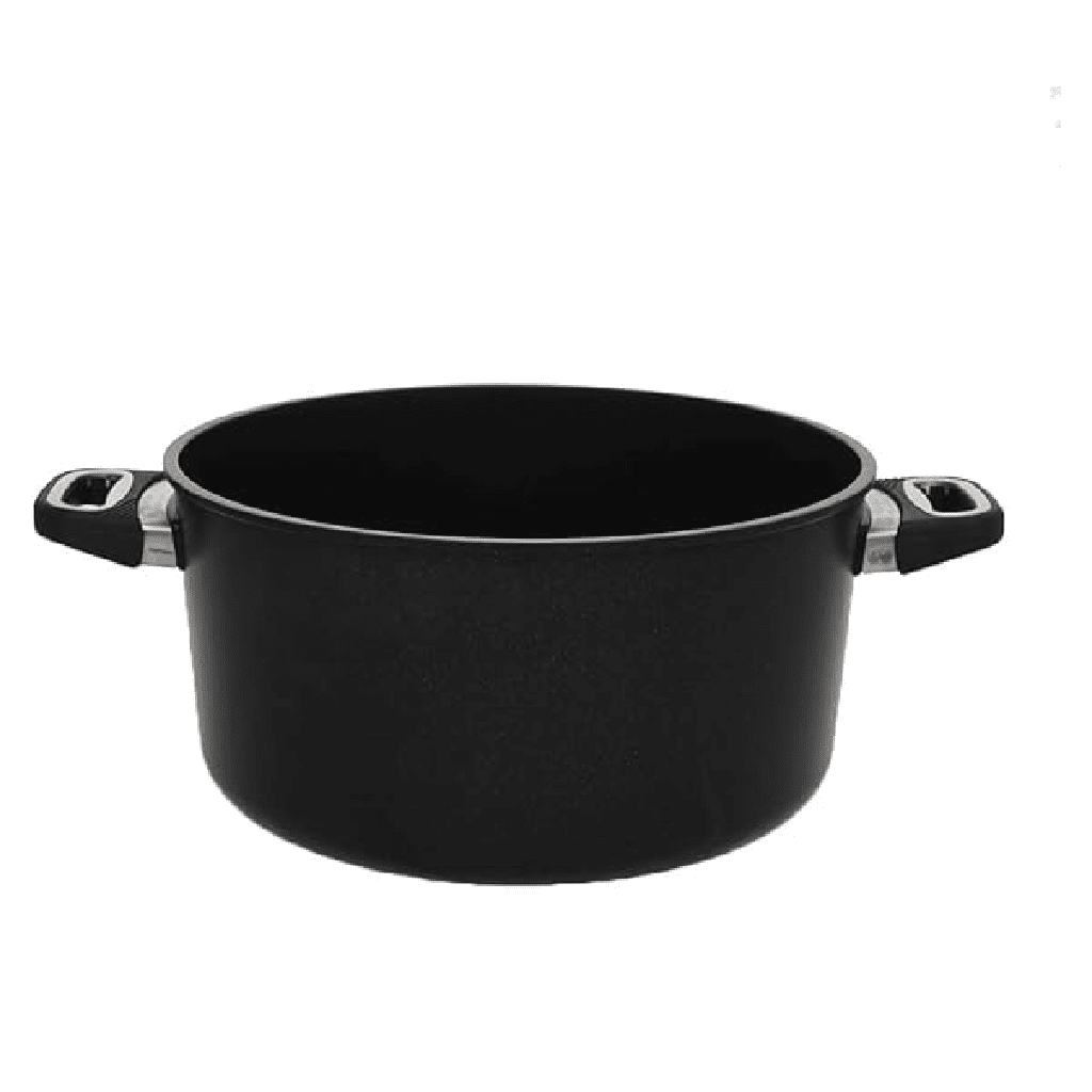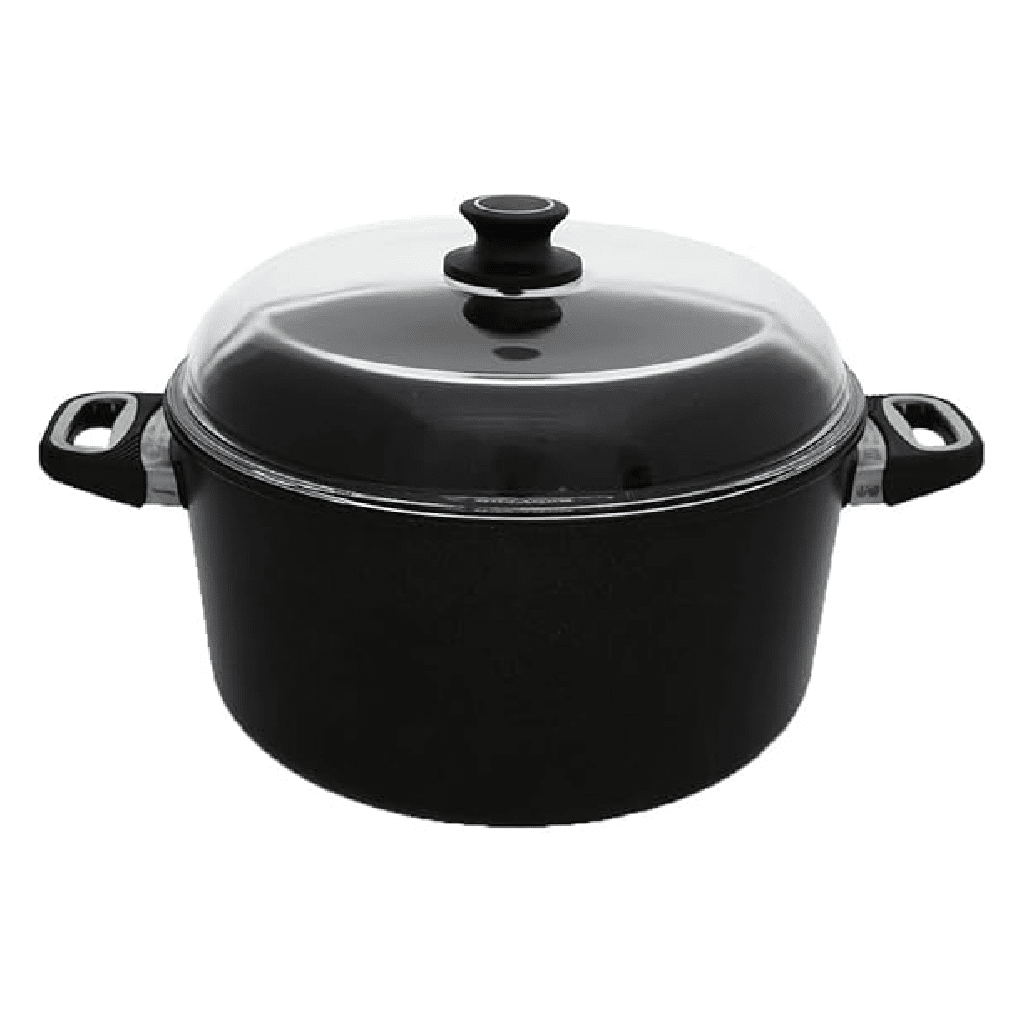 AMT - Round Cooking Pot with Handles Height 16cm Cast Aluminum 32cm Black With pyrex lid 32cm