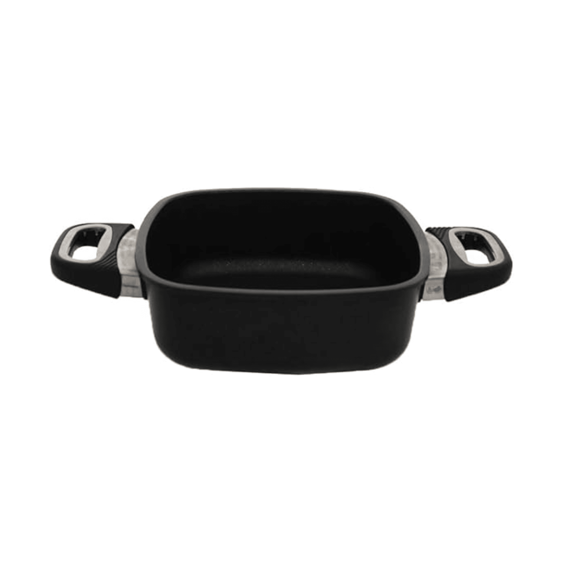 AMT Squared Pot 20 cm x 20 cm with handles - 7 cm, black with Glass Lid