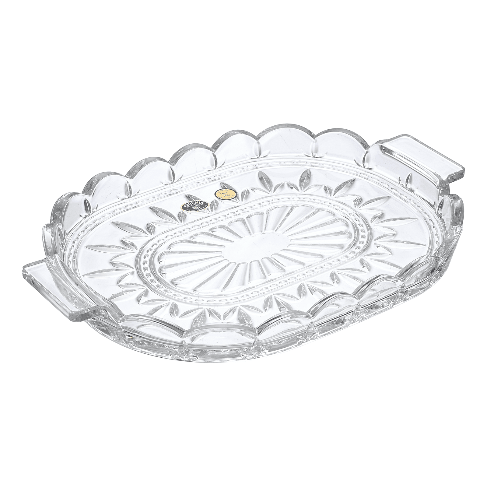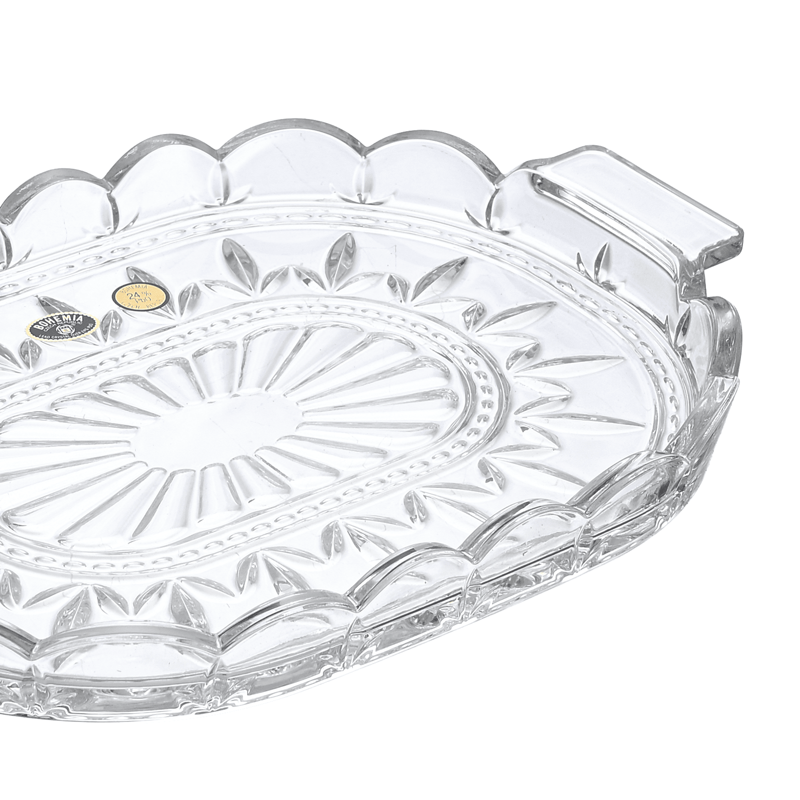 Bohemia Crystal - Crystal Oval Tray With Handles - Hand Cut - Clear - 28x20x3cm