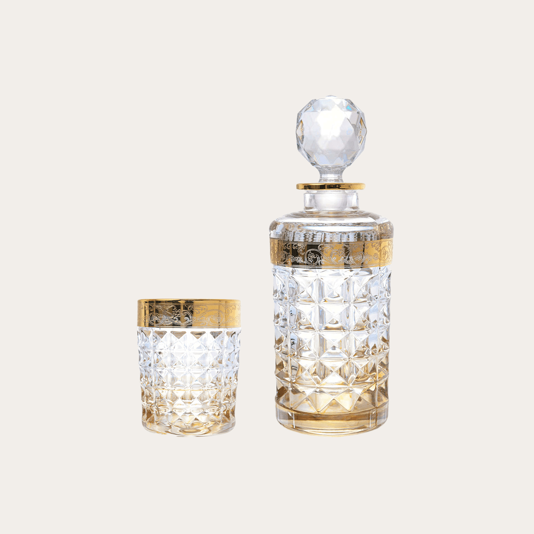 Bohemia Crystal - Diamond Drink Set 7 Pieces - Amber & Gold - Crystal