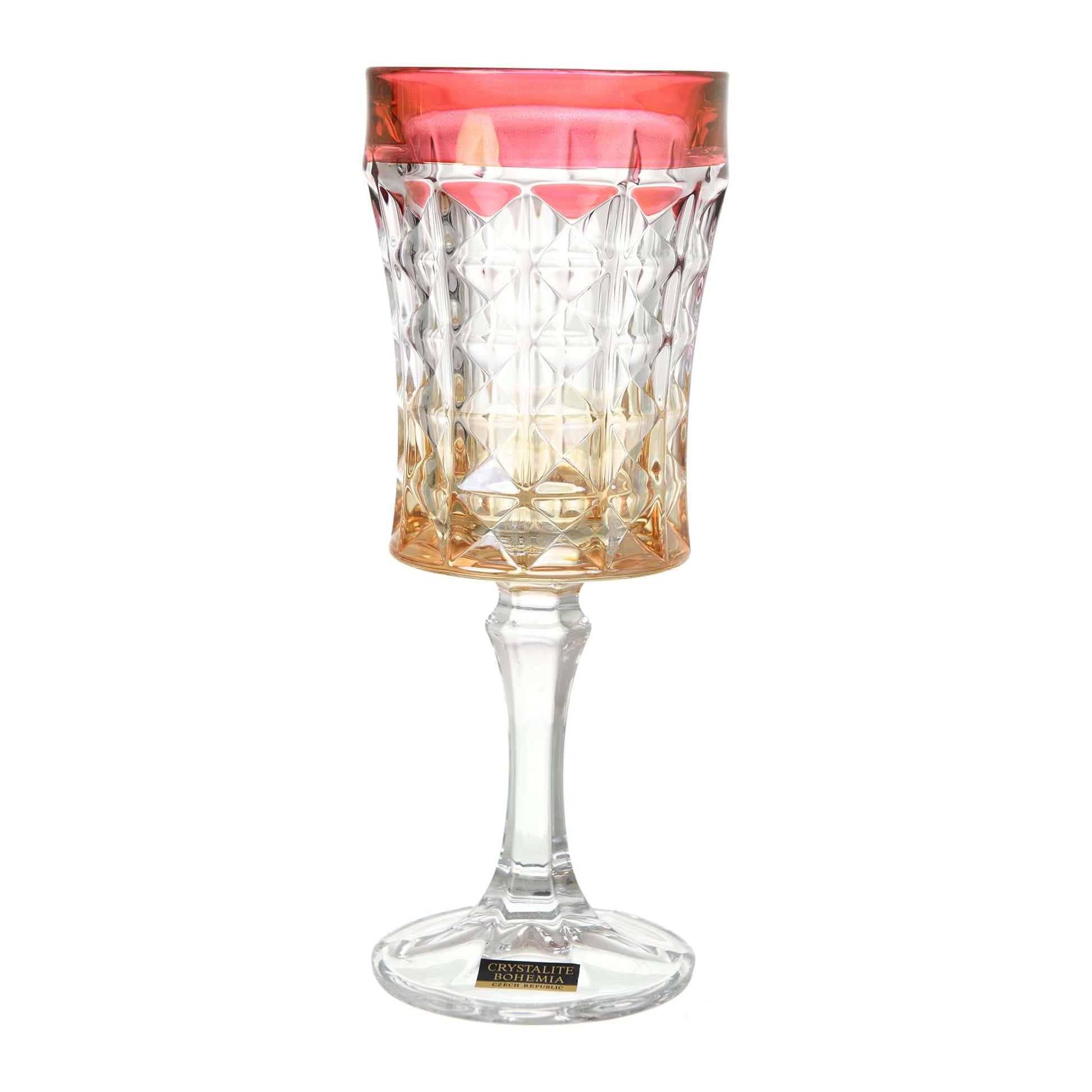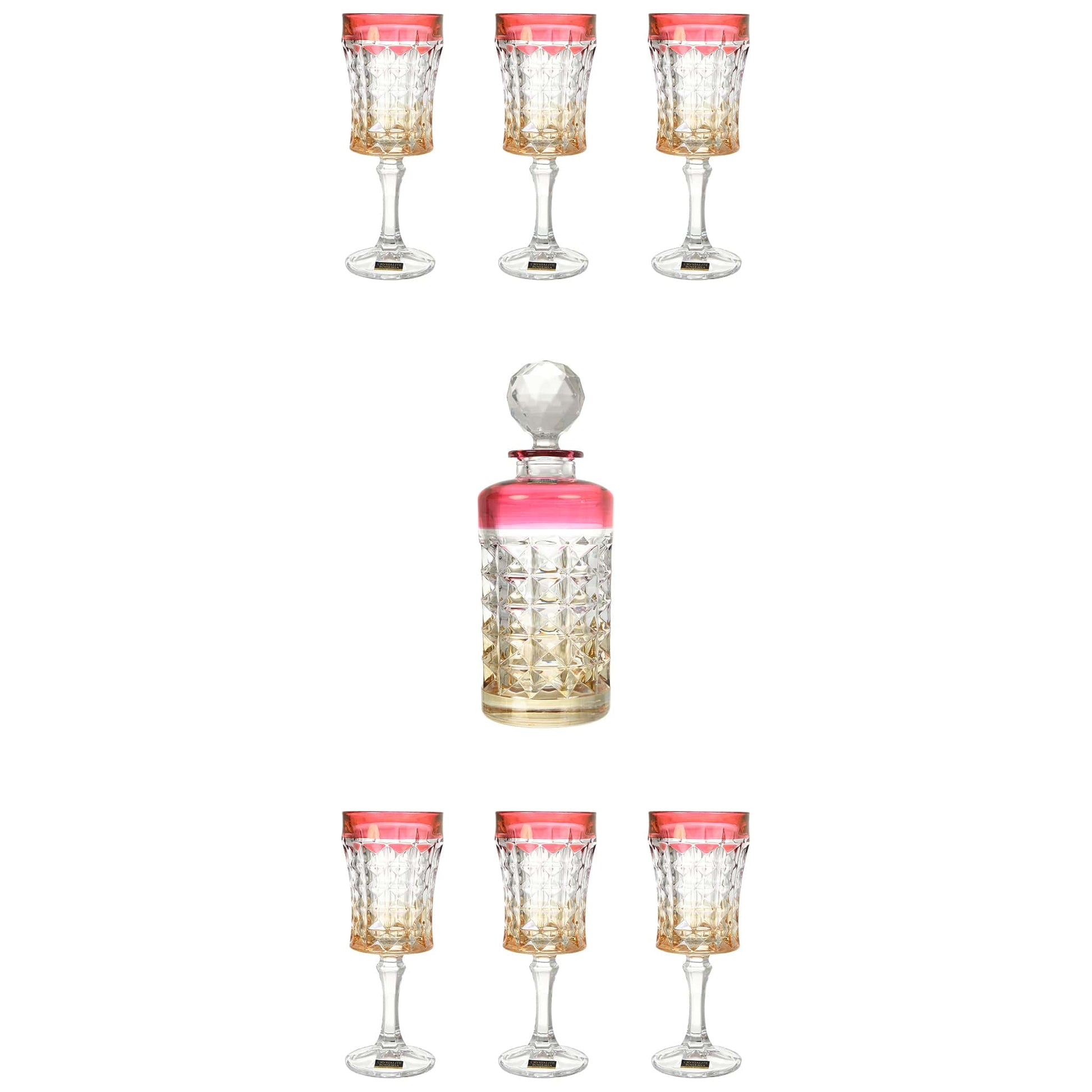 Bohemia Crystal - Diamond Drink Set 7 Pieces - Red & Yellow - Crystal