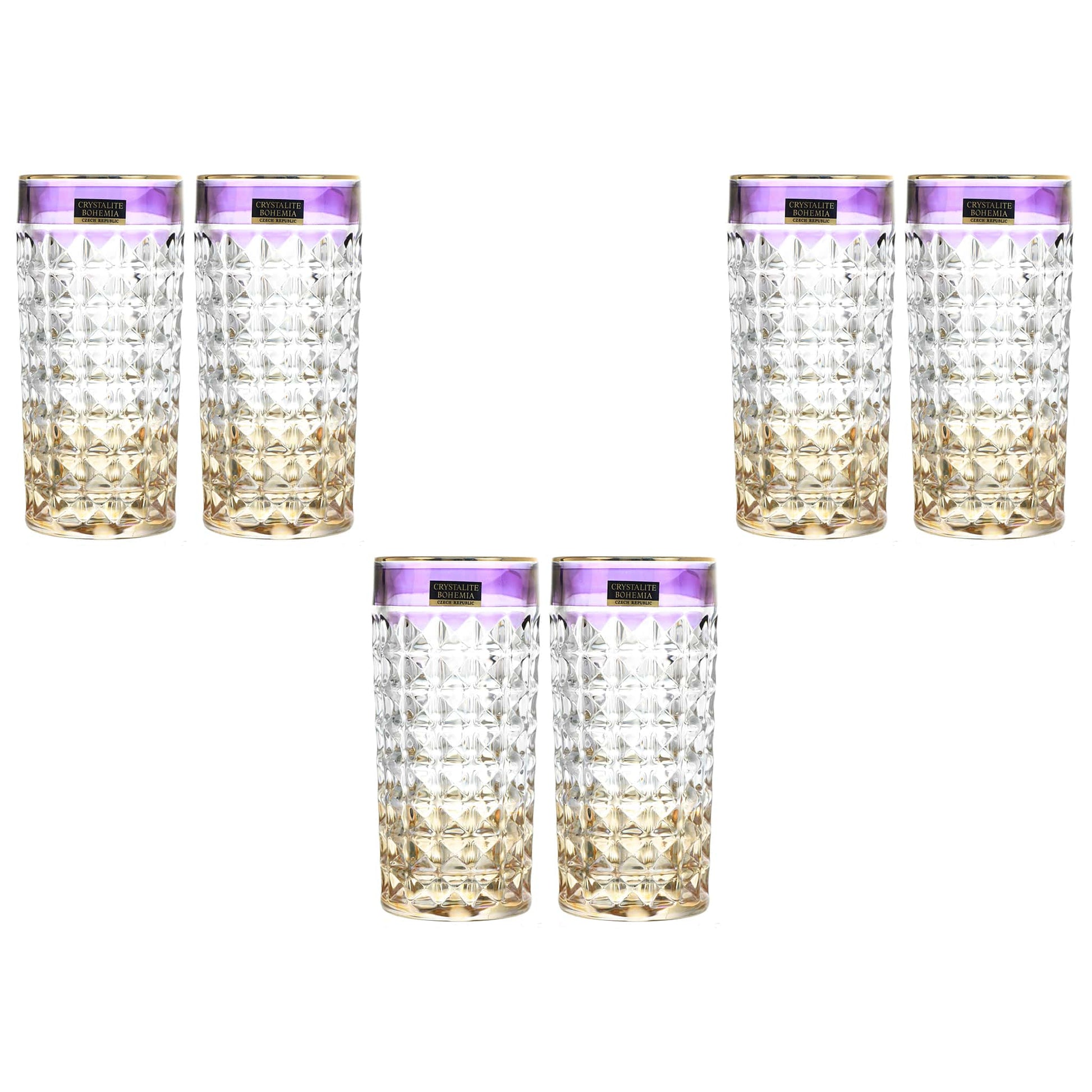 Bohemia Crystal - Highball Glass Set 6 Pieces - 260ml - Purple & Gold - Crystal