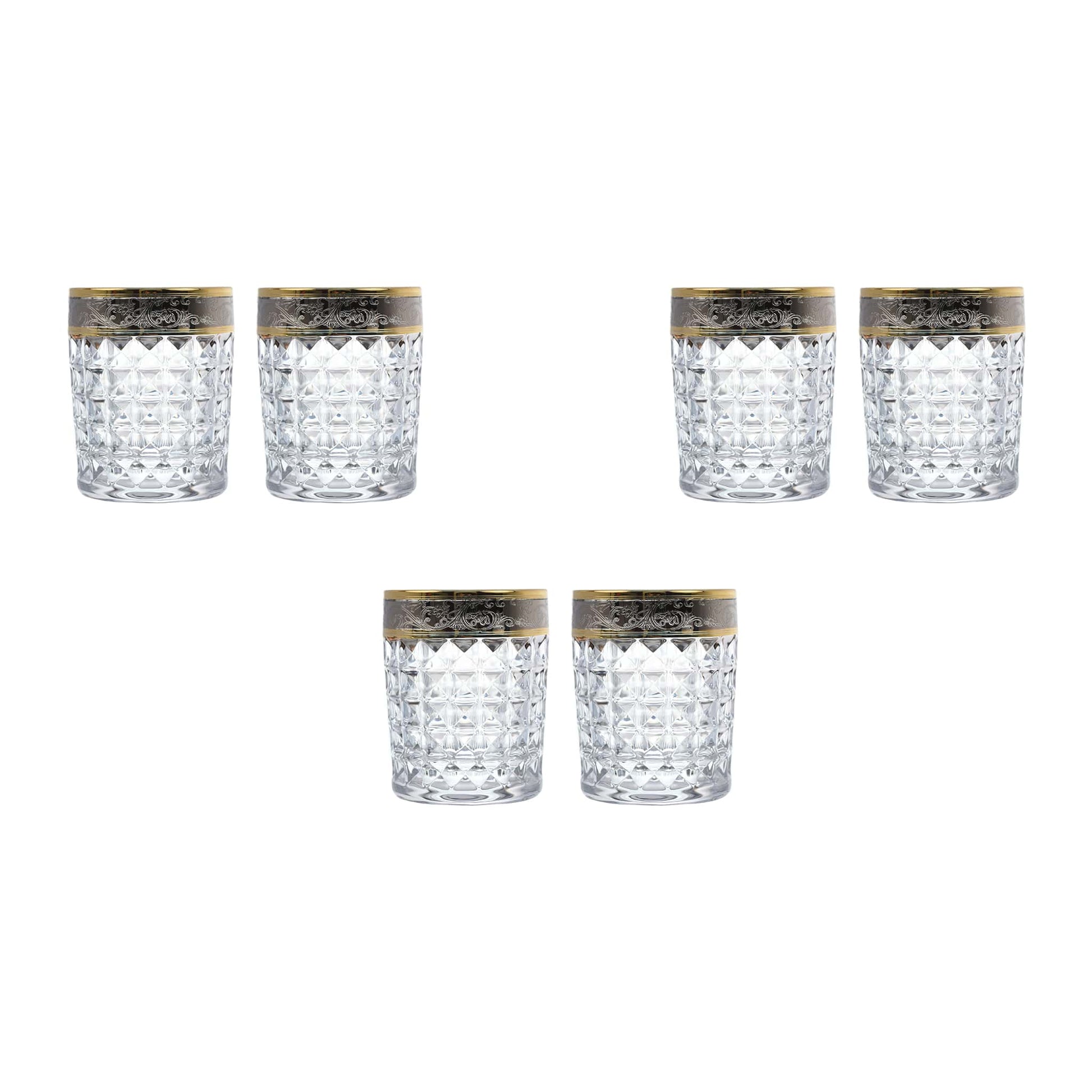 Bohemia Crystal - Diamond Tumbler Glass Set 6 Pieces - 230ml - Gold & Silver - Crystal