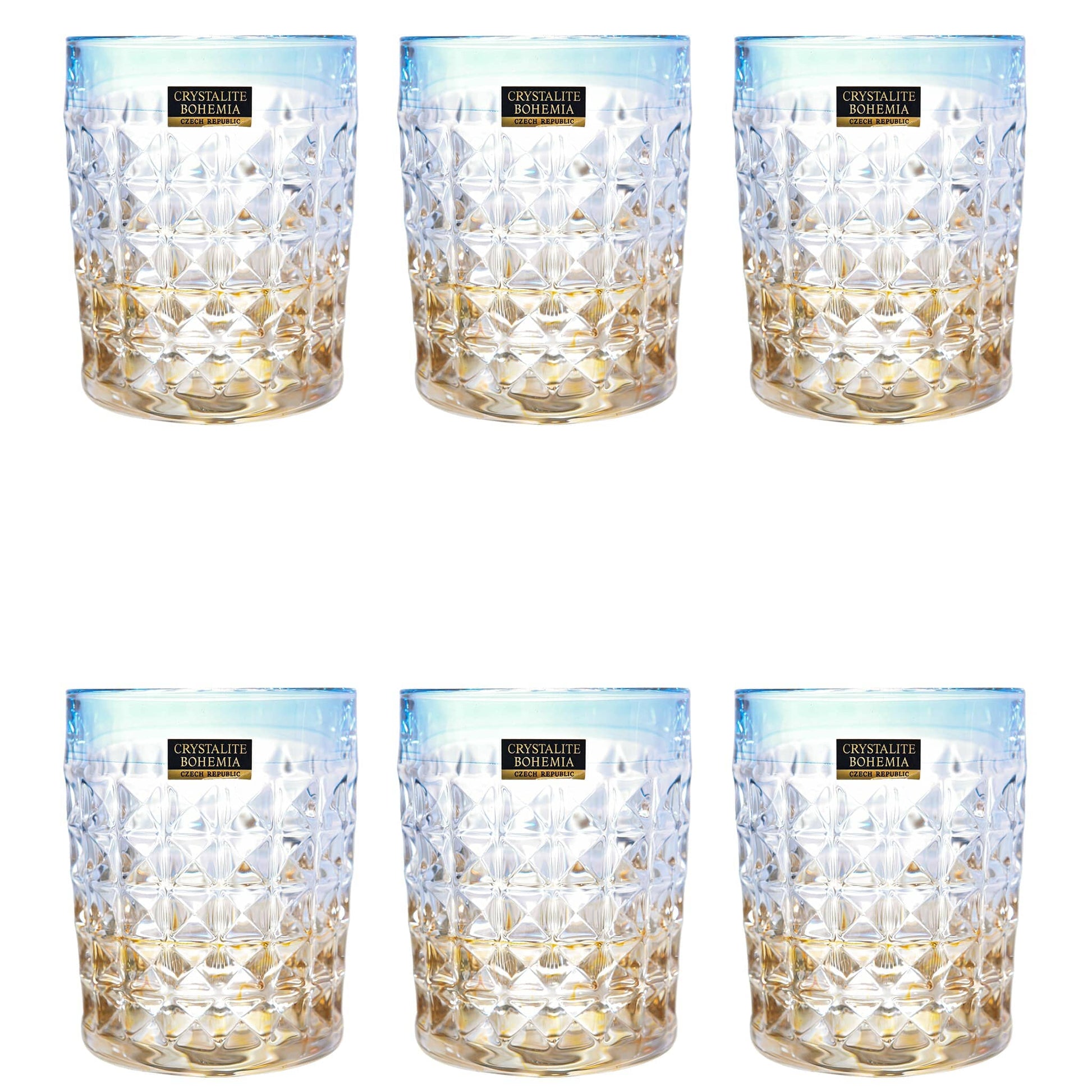 Bohemia Crystal - Diamond Tumbler Glass Set 6 Pieces - Blue & Gold - 230ml - Crystal