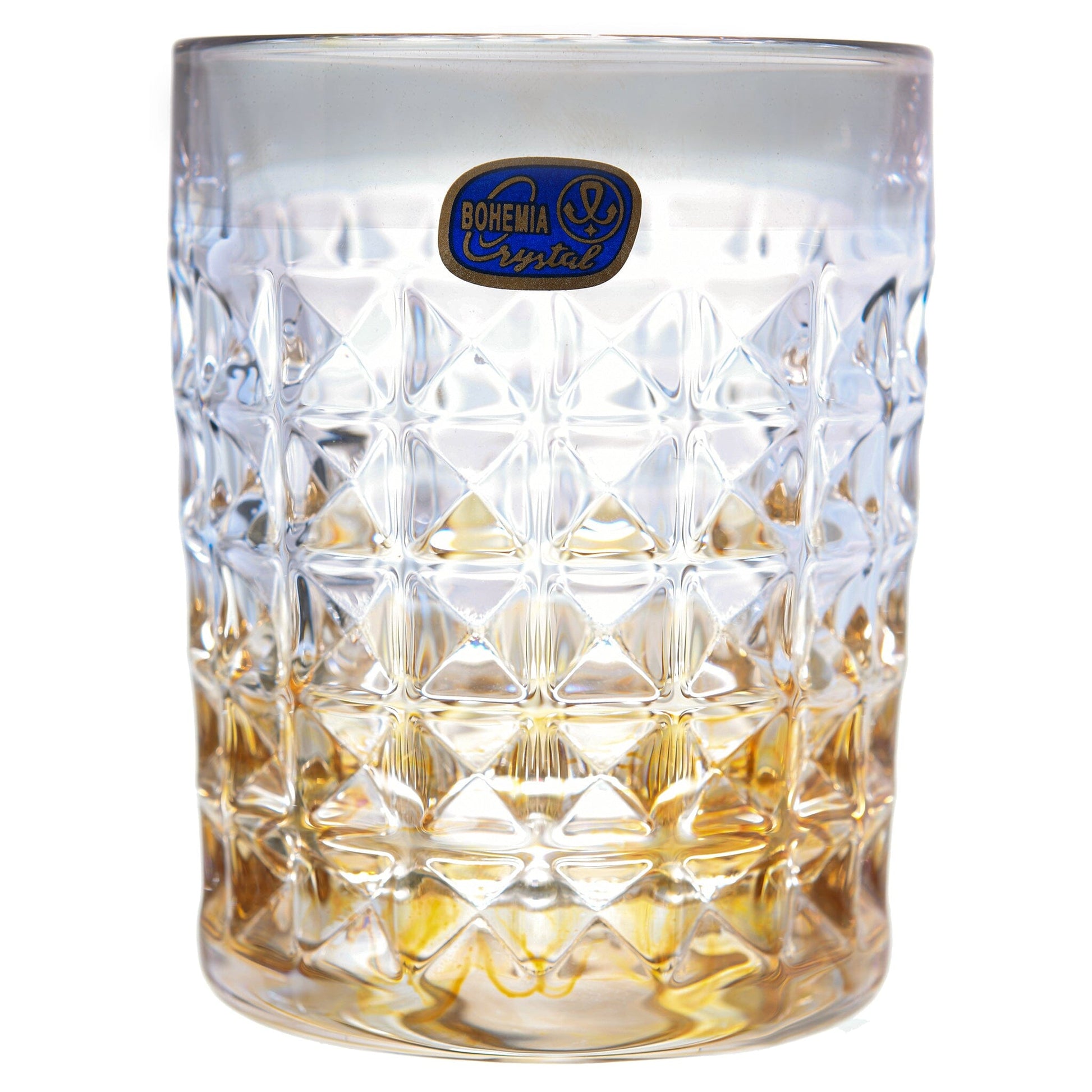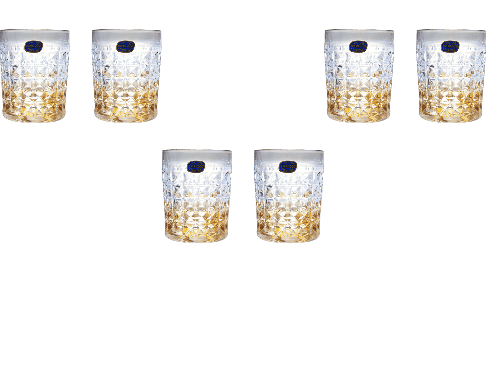 Bohemia Crystal - Diamond Tumbler Glass Set 6 Pieces - Grey & Gold - 230ml - Crystal