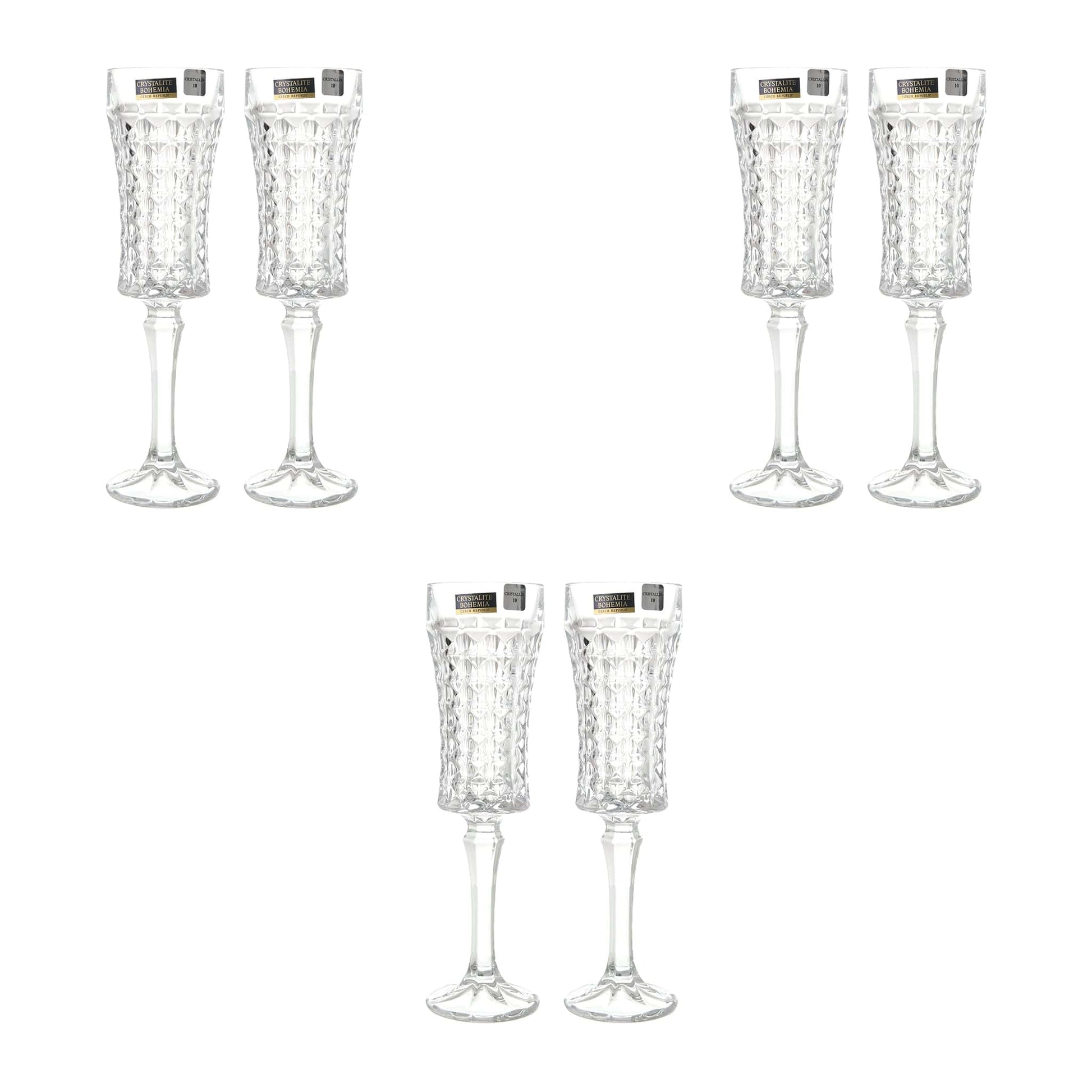 Bohemia Crystal - Flute Diamond Glass Set 6 Pieces - 120ml - Crystal