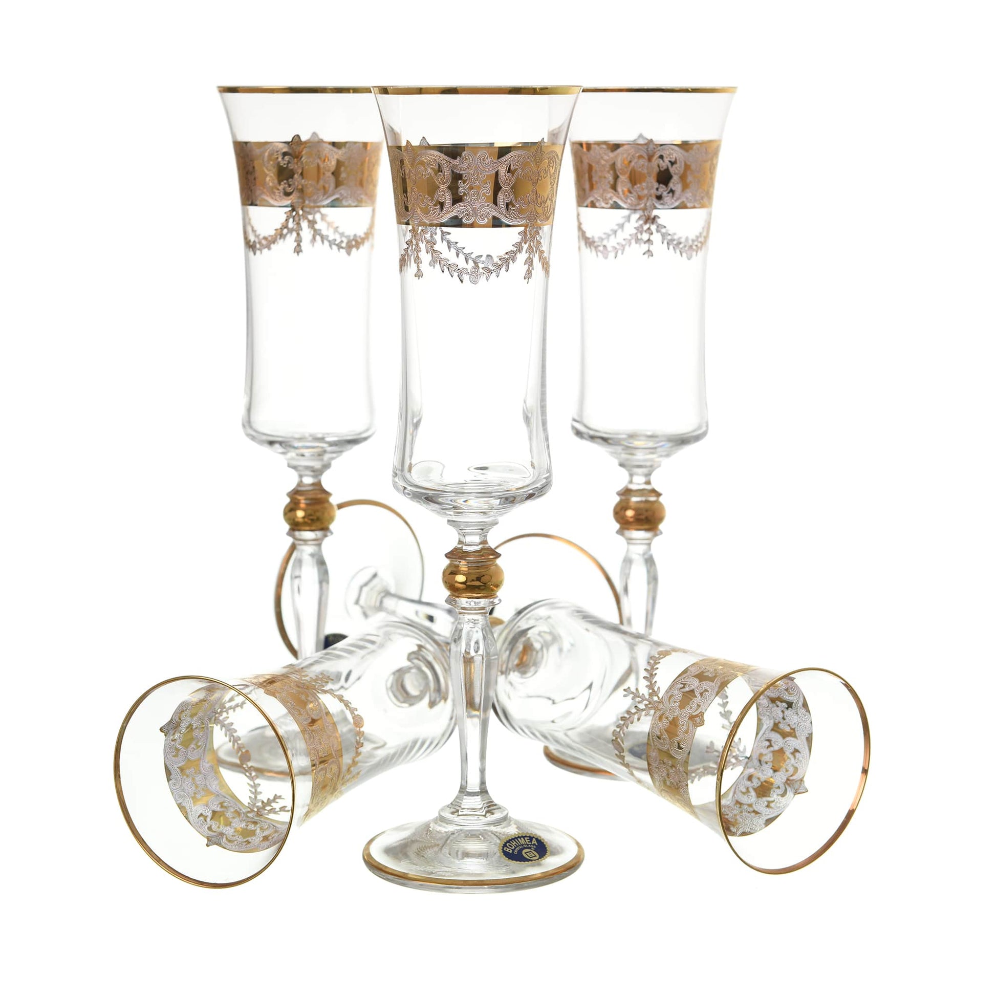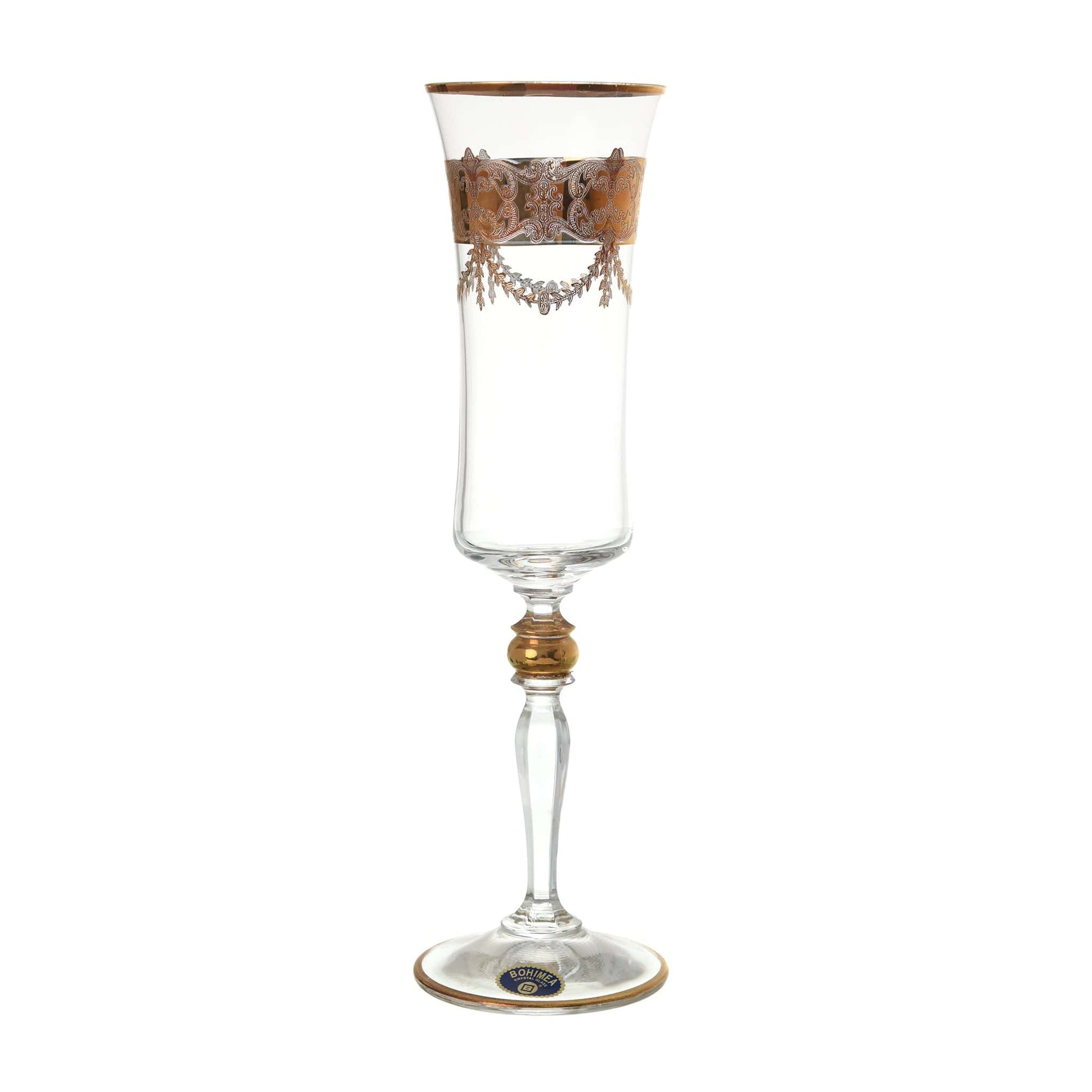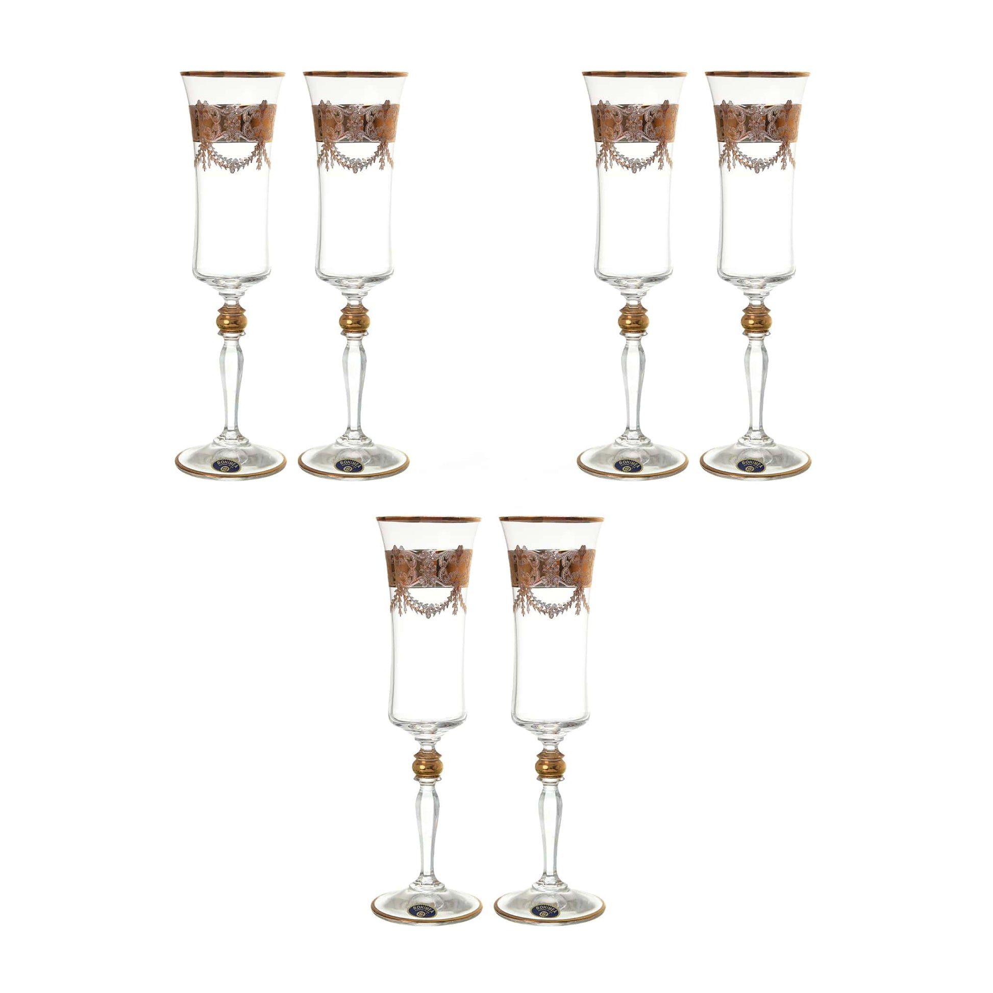 Bohemia Crystal - Flute Glass Set 6 Pieces - Gold - 150ml - Crystal